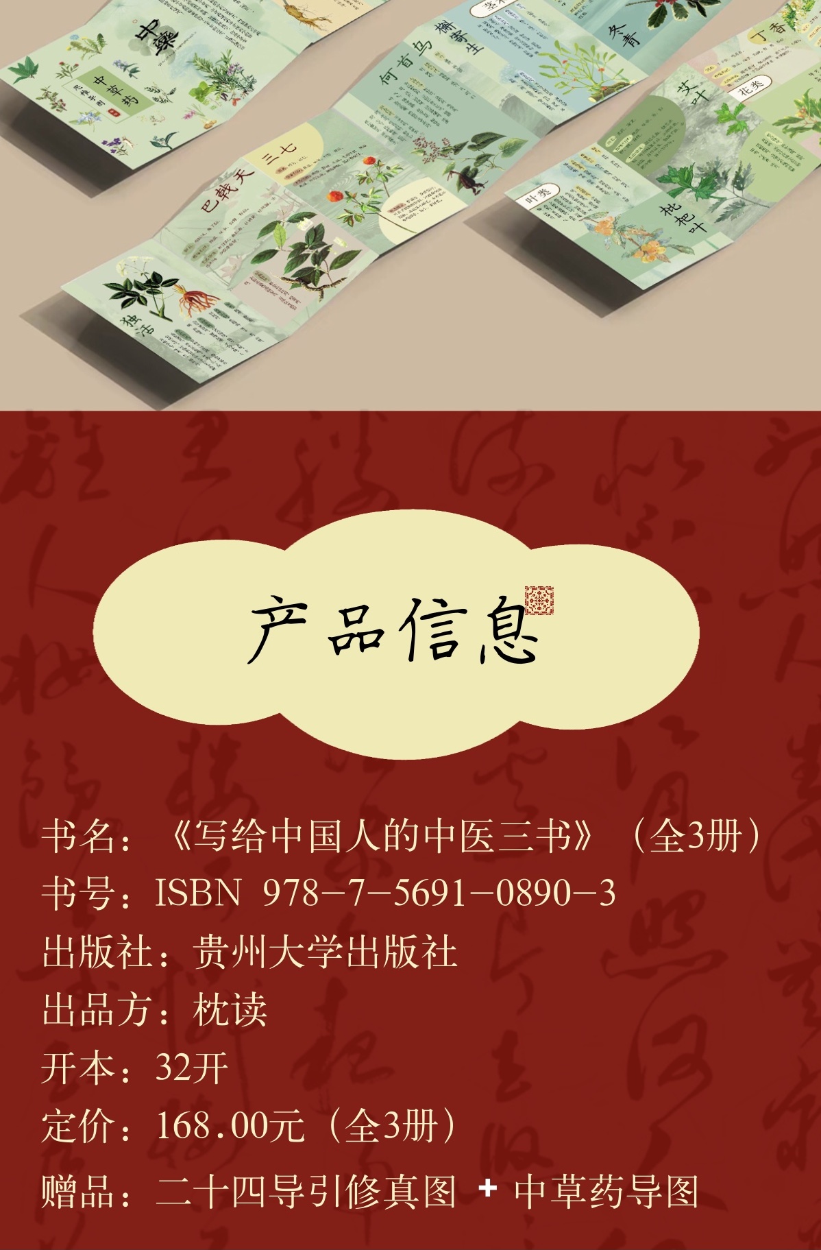 4折包邮《写给中国人的国医三书》+《写给中国人的中医三书》(全6册), 《国医三书》(全3册)赠:《八段锦导图》, 《中医三书》(全3册)赠:中草药导图和二十四导引修真图各一张。