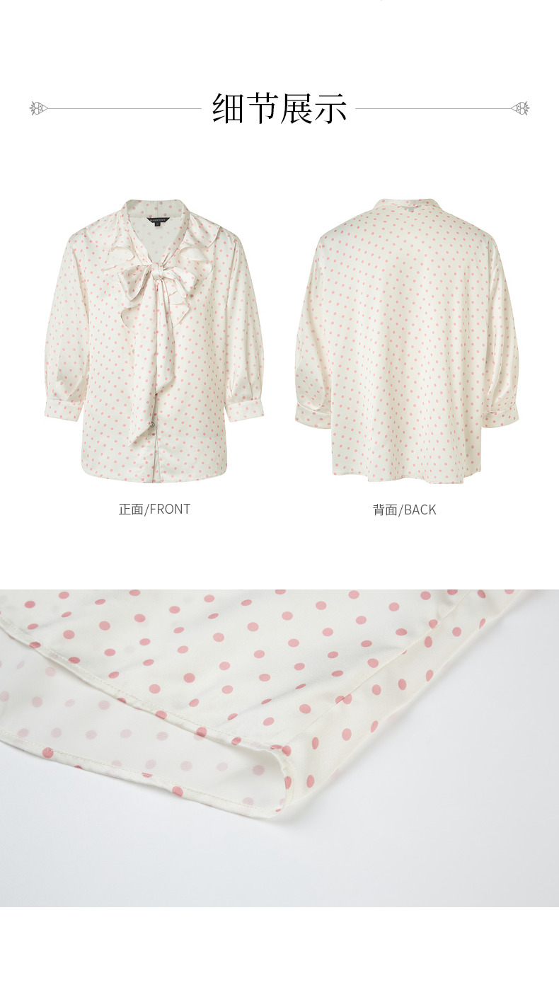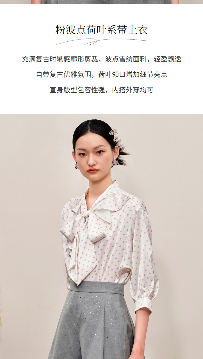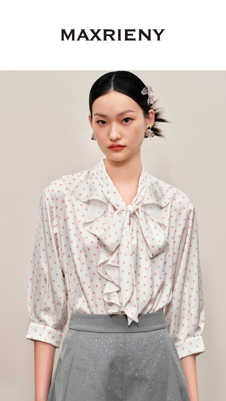 MAXRIENY复古宫廷风粉波点荷叶系带衬衫上衣(货号:MC88TP561)