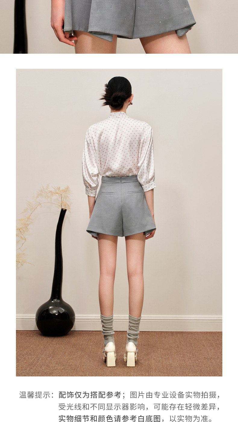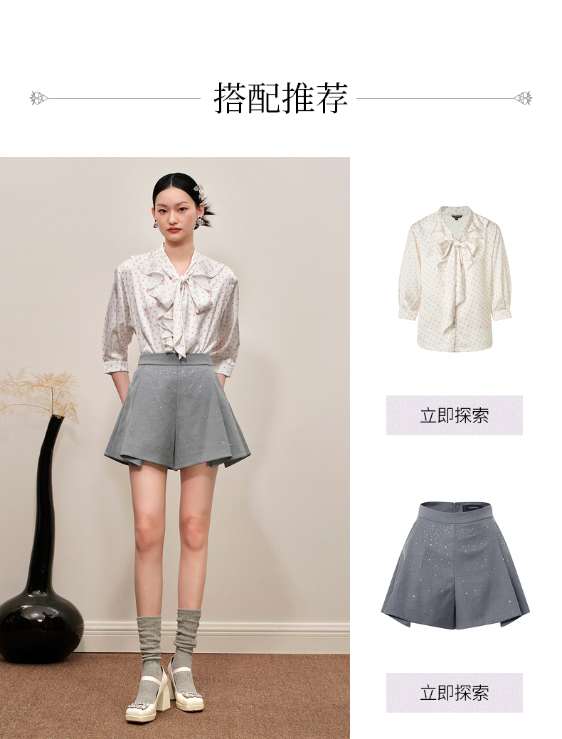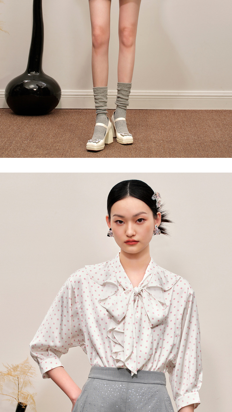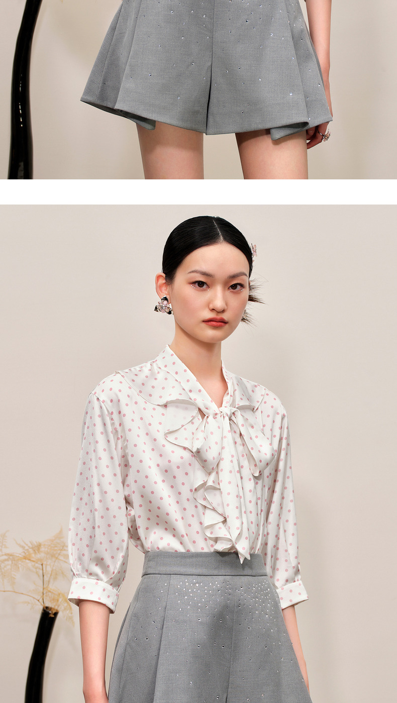 MAXRIENY复古宫廷风粉波点荷叶系带衬衫上衣(货号:MC88TP561)