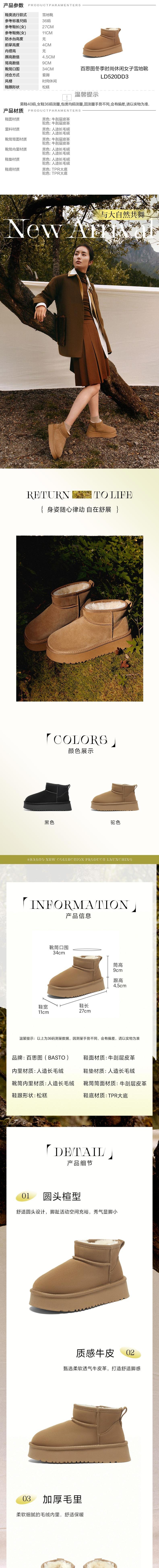 BASTO百思图 女雪地靴 LD520DD3