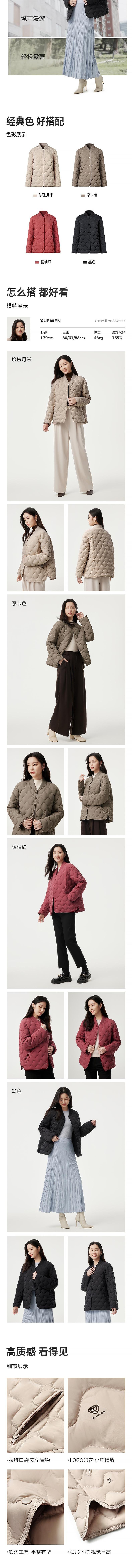 坦博尔 菱格羽绒服女小香风 TBF310252A