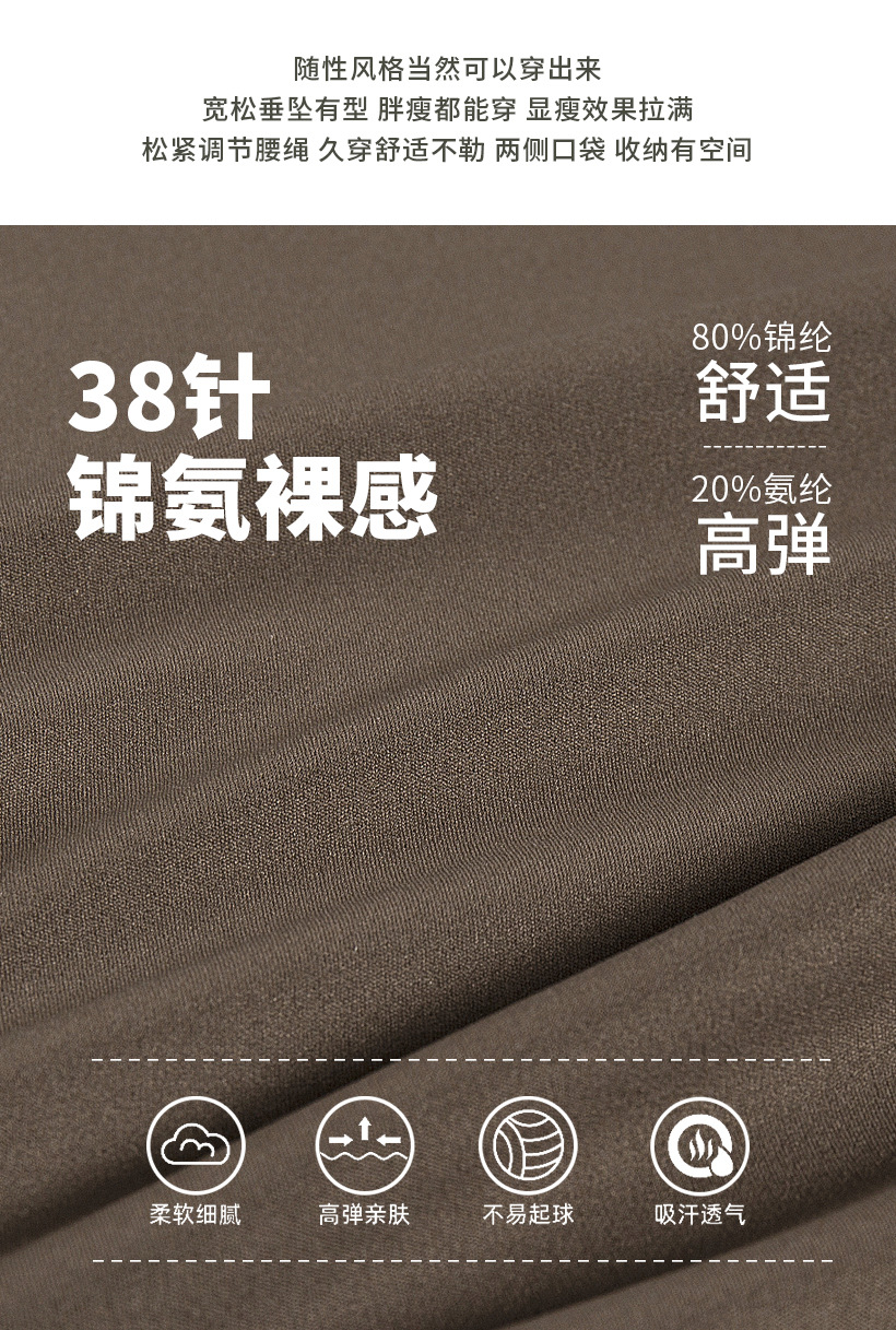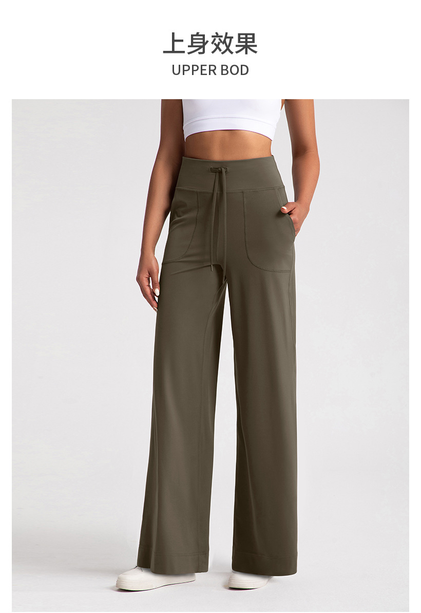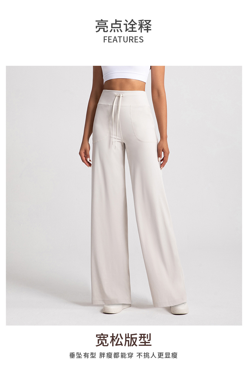 跃牌【倚窗听雨】系列 宽松直筒裤女裸感抽绳瑜伽长裤CK052