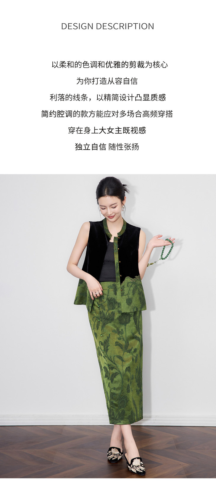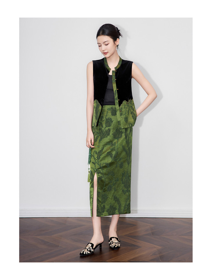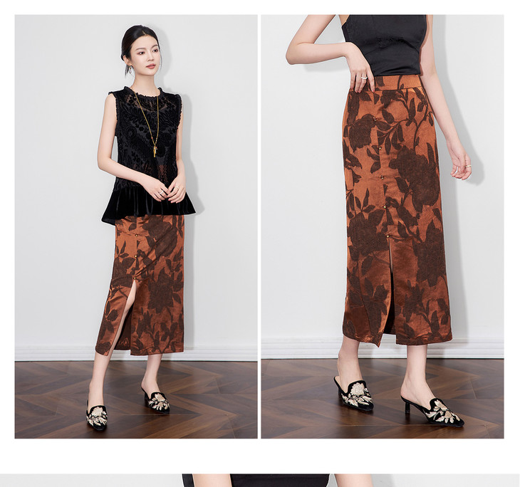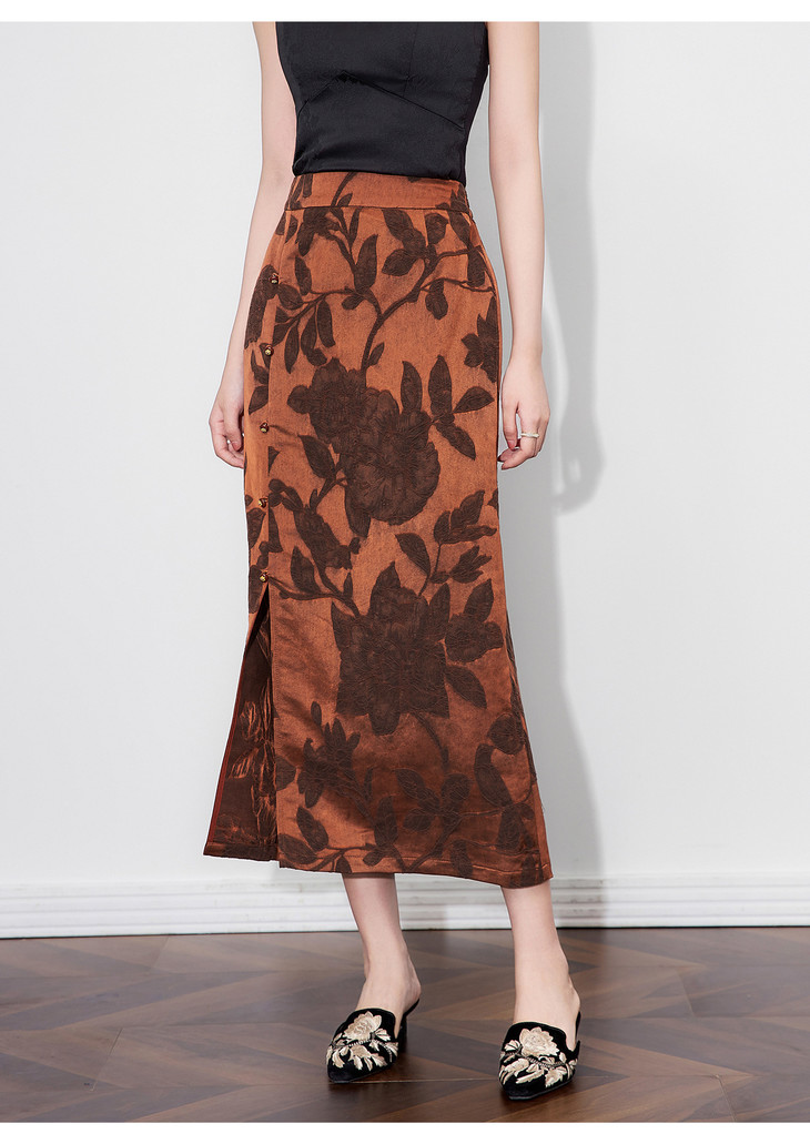 南油轻奢重工天丝提花,新中式半身裙包臀开叉中长WLZD-2511704
