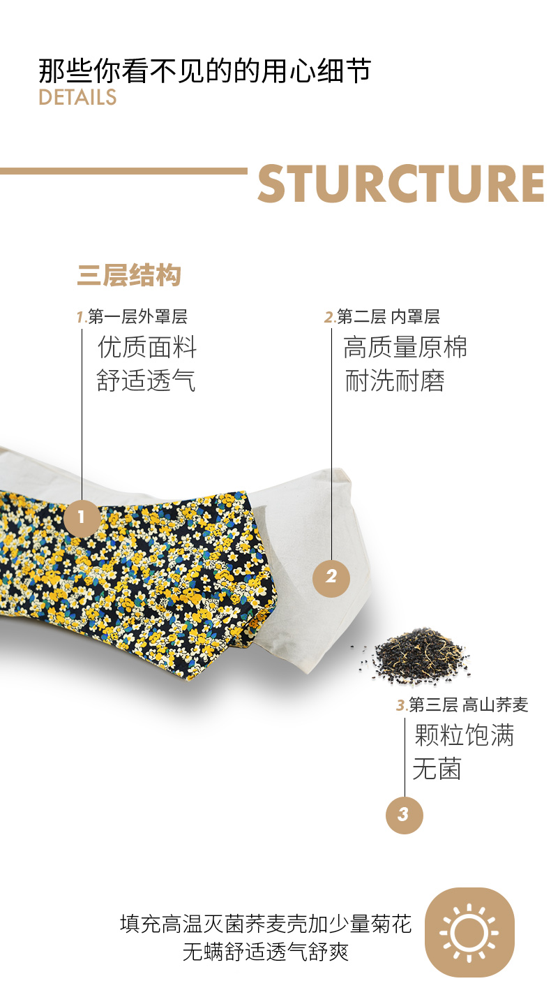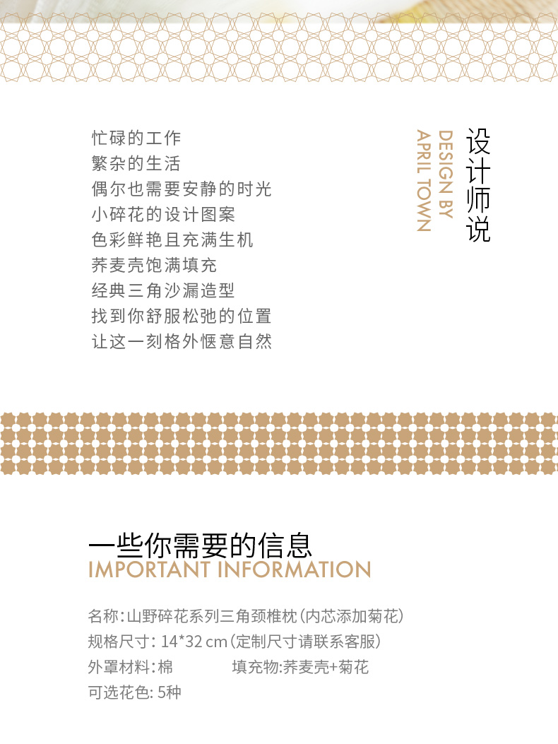 北欧碎花系列三角颈椎枕天然荞麦壳菊花护颈枕睡觉支撑专用枕头成人