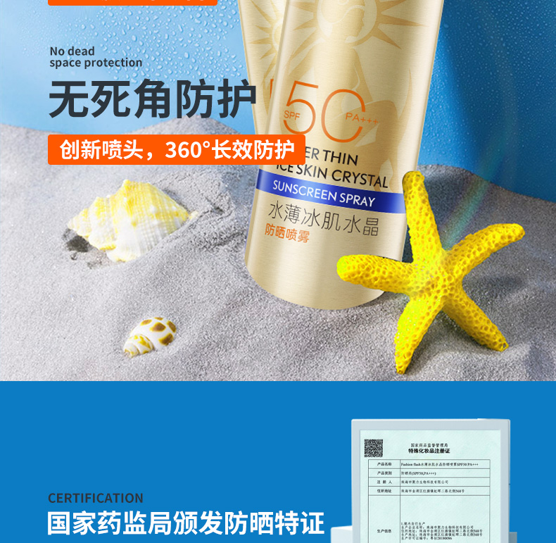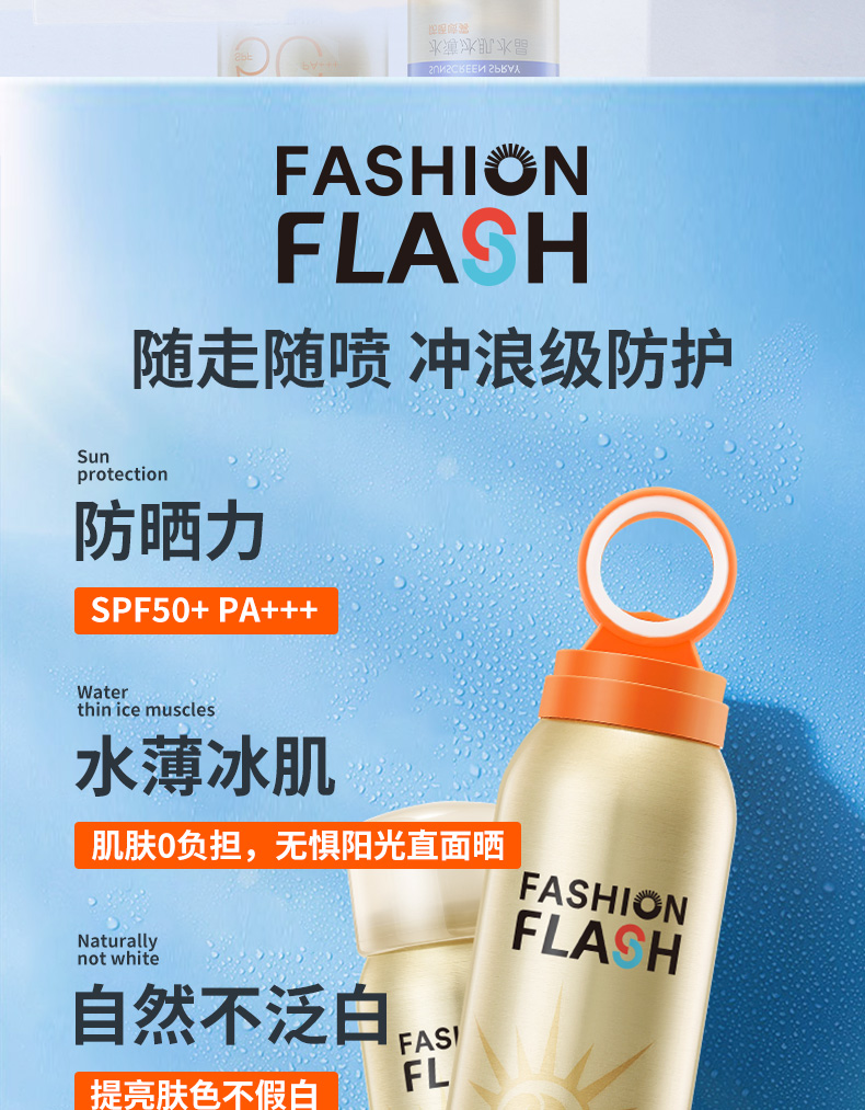 【高倍防晒一喷成膜】灿烂之护FASHION FLASH水薄冰肌水晶防晒喷雾60mlSPF50+/PA+++