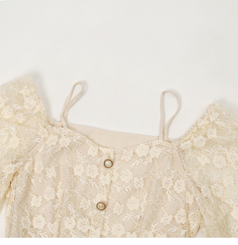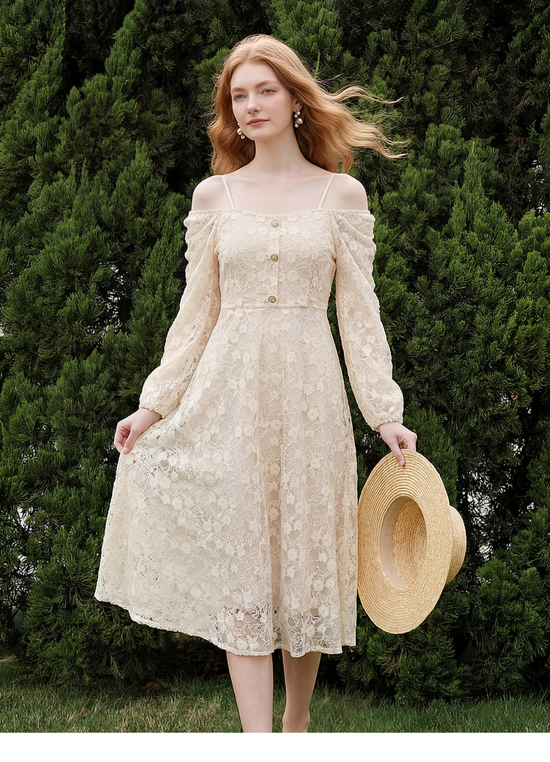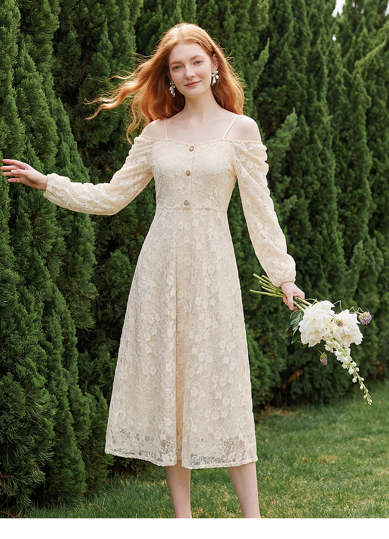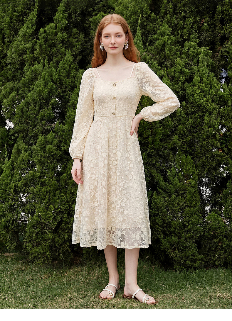 天猫同步【两穿!法式浪漫】拉夏贝尔/La Chapelle方领两穿长袖连衣裙温柔甜美法式少女仙女裙小礼服