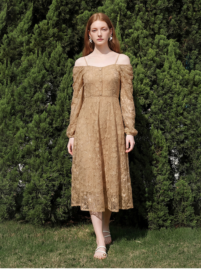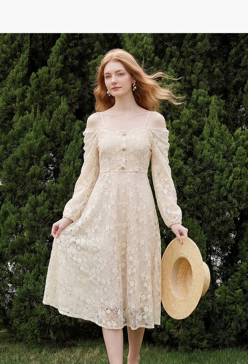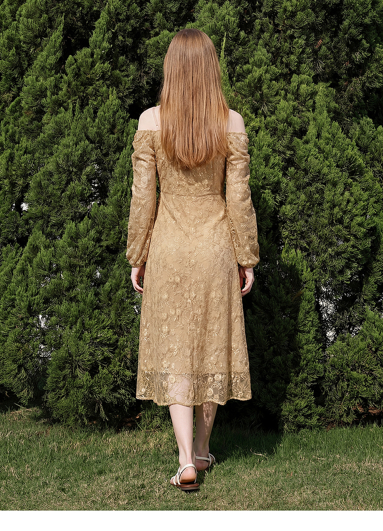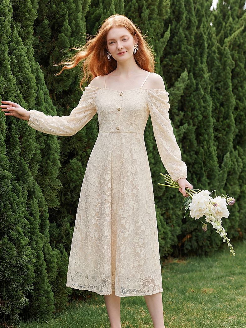 天猫同步【两穿!法式浪漫】拉夏贝尔/La Chapelle方领两穿长袖连衣裙温柔甜美法式少女仙女裙小礼服