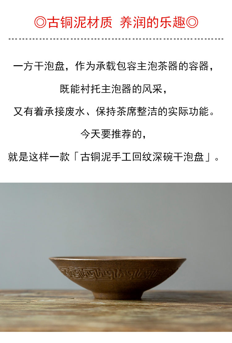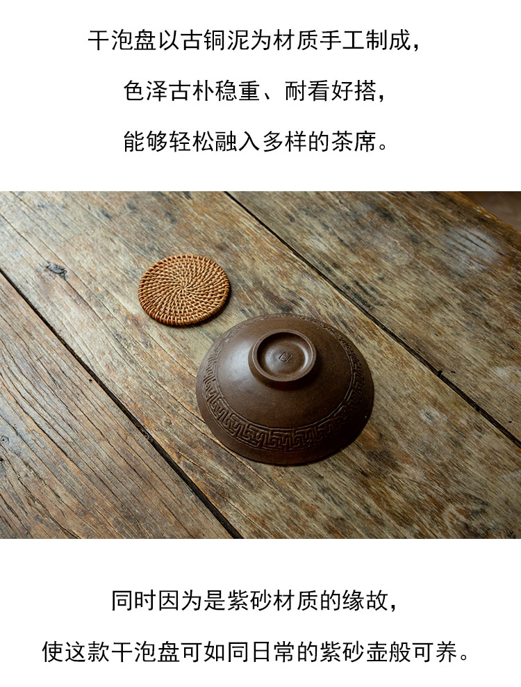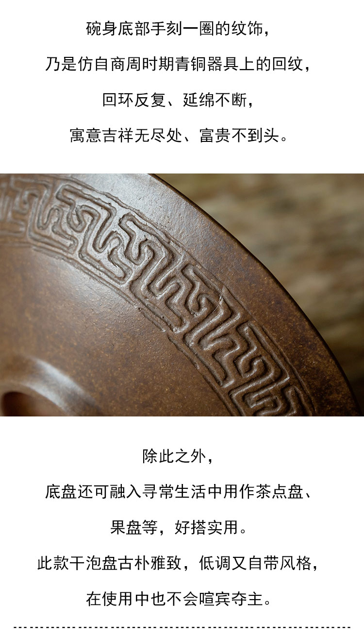 茶香记 紫砂古铜泥手工回纹深碗干泡盘壶承古朴稳重壶垫茶桌零配