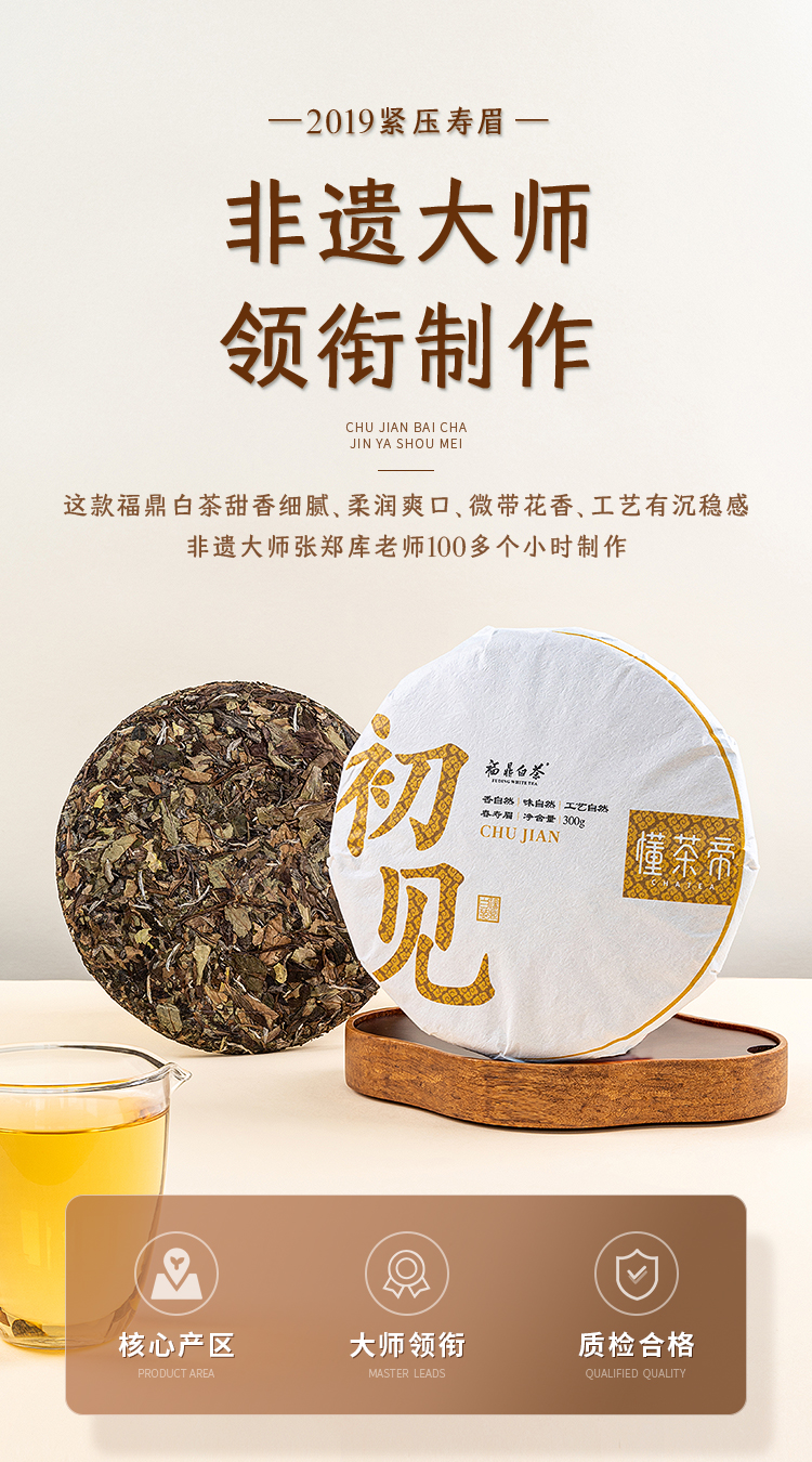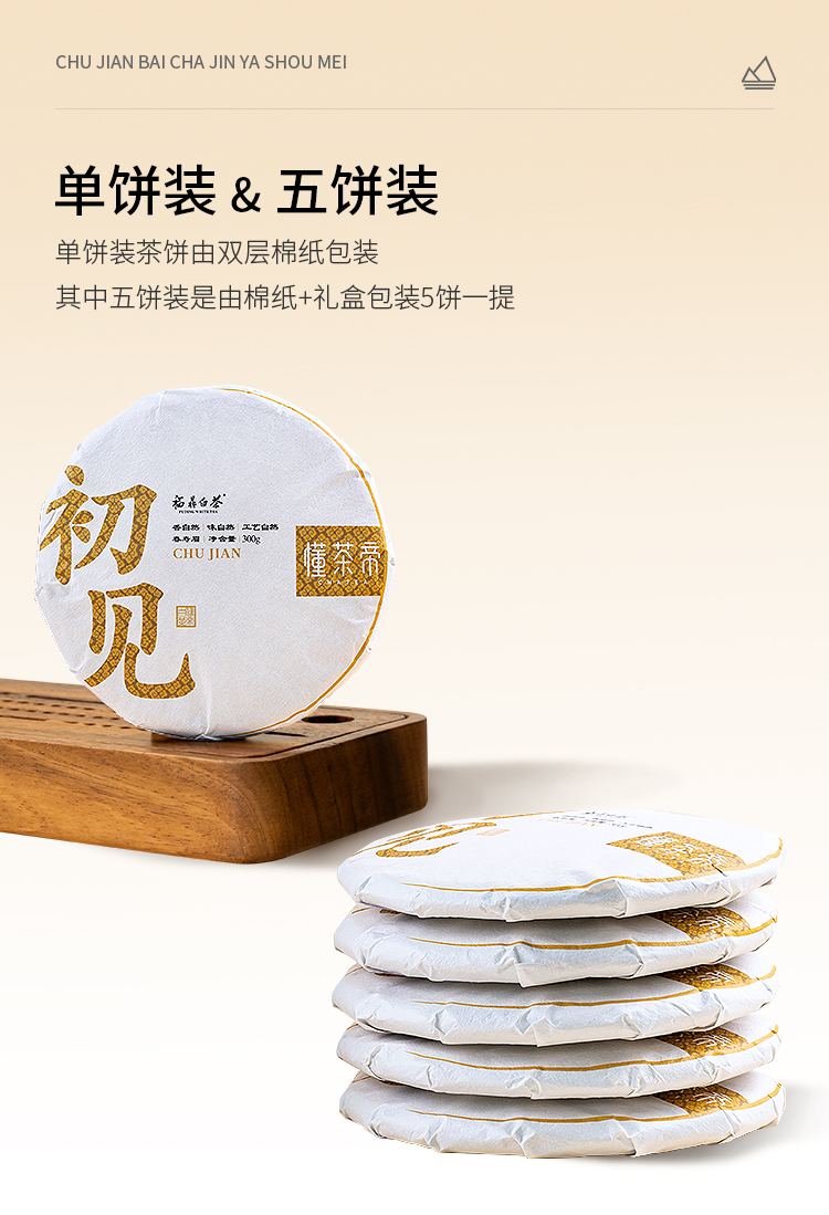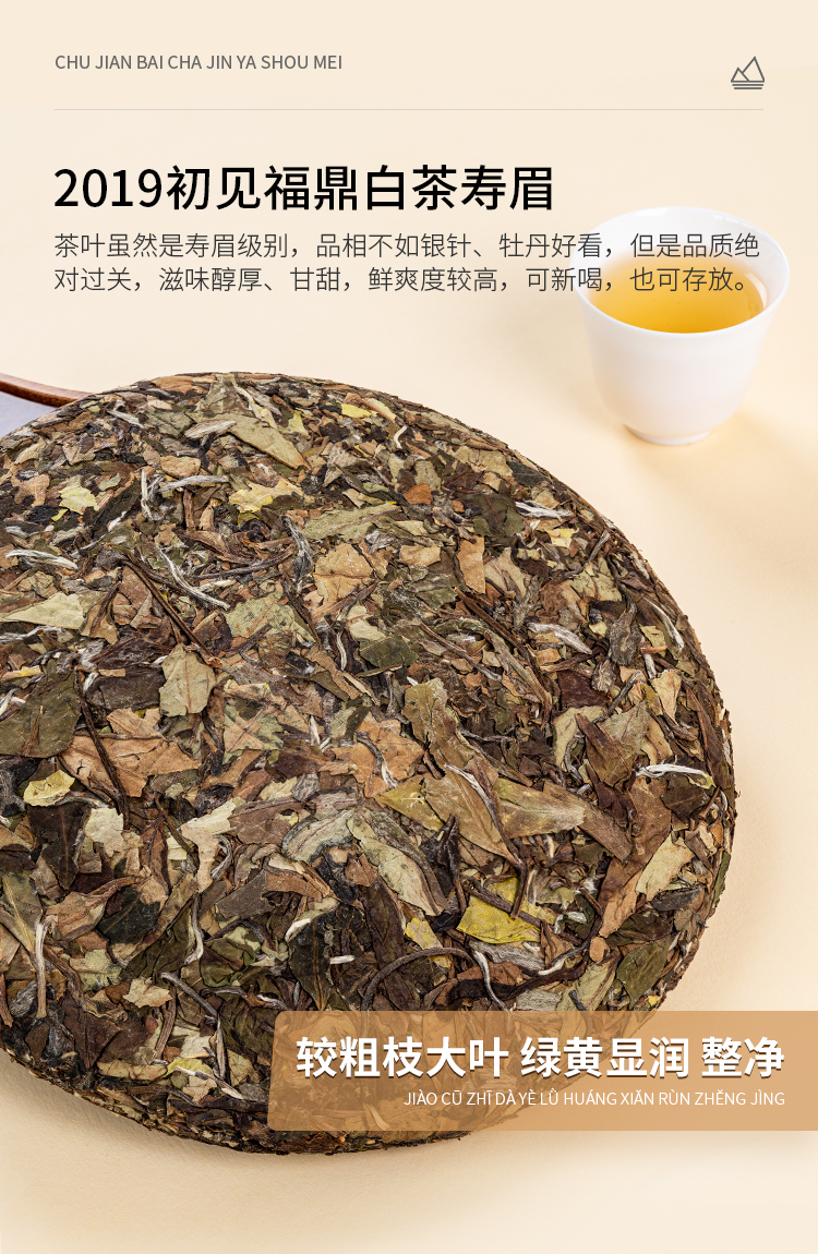 福鼎白茶2019年寿眉饼(金初见)300克/饼