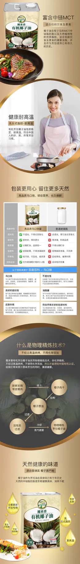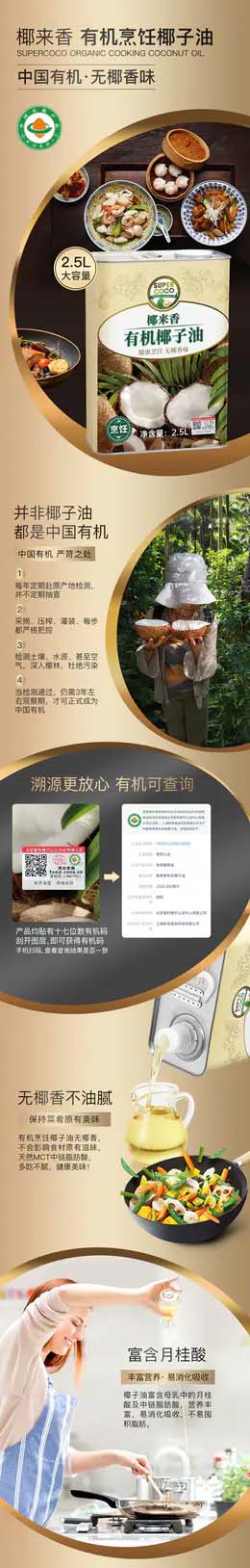 椰来香有机椰子油食用油2.5L 无椰香健康烹饪耐高温生酮