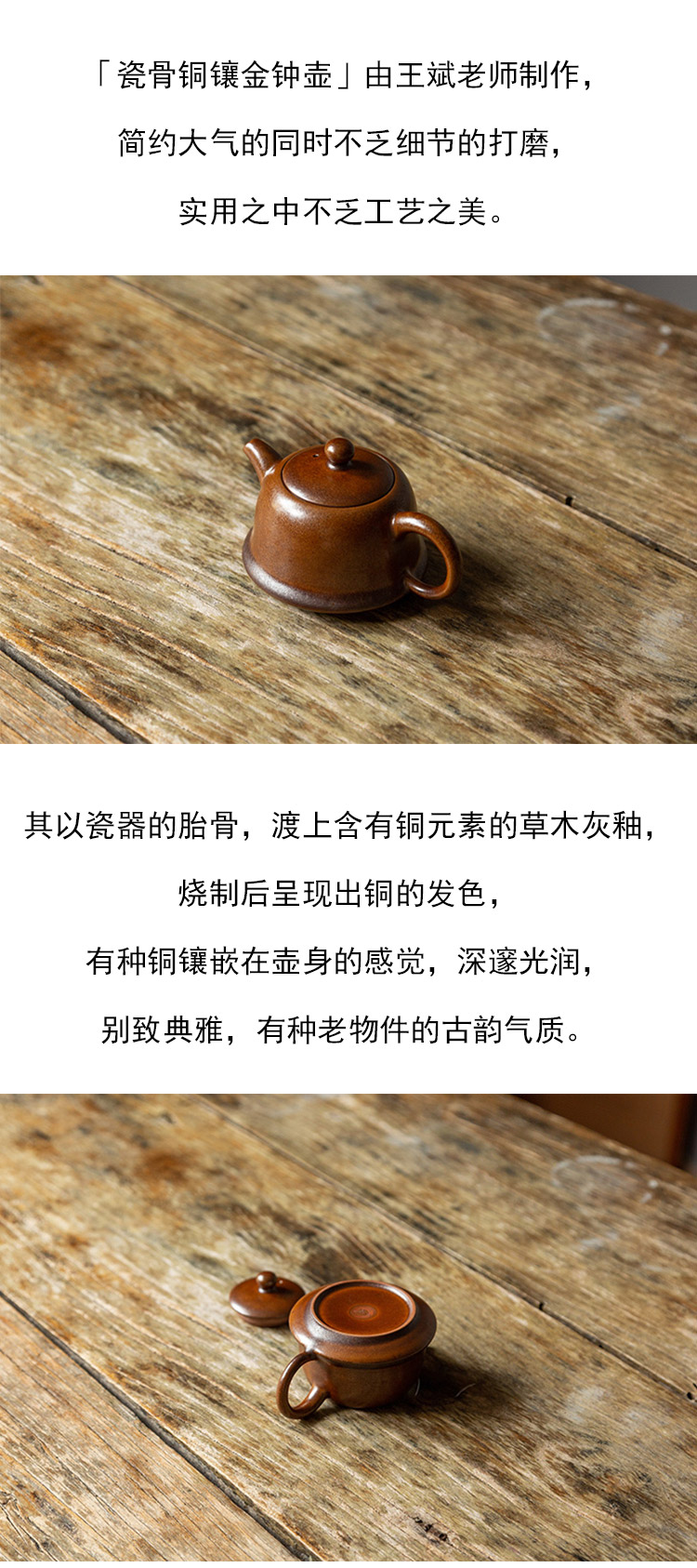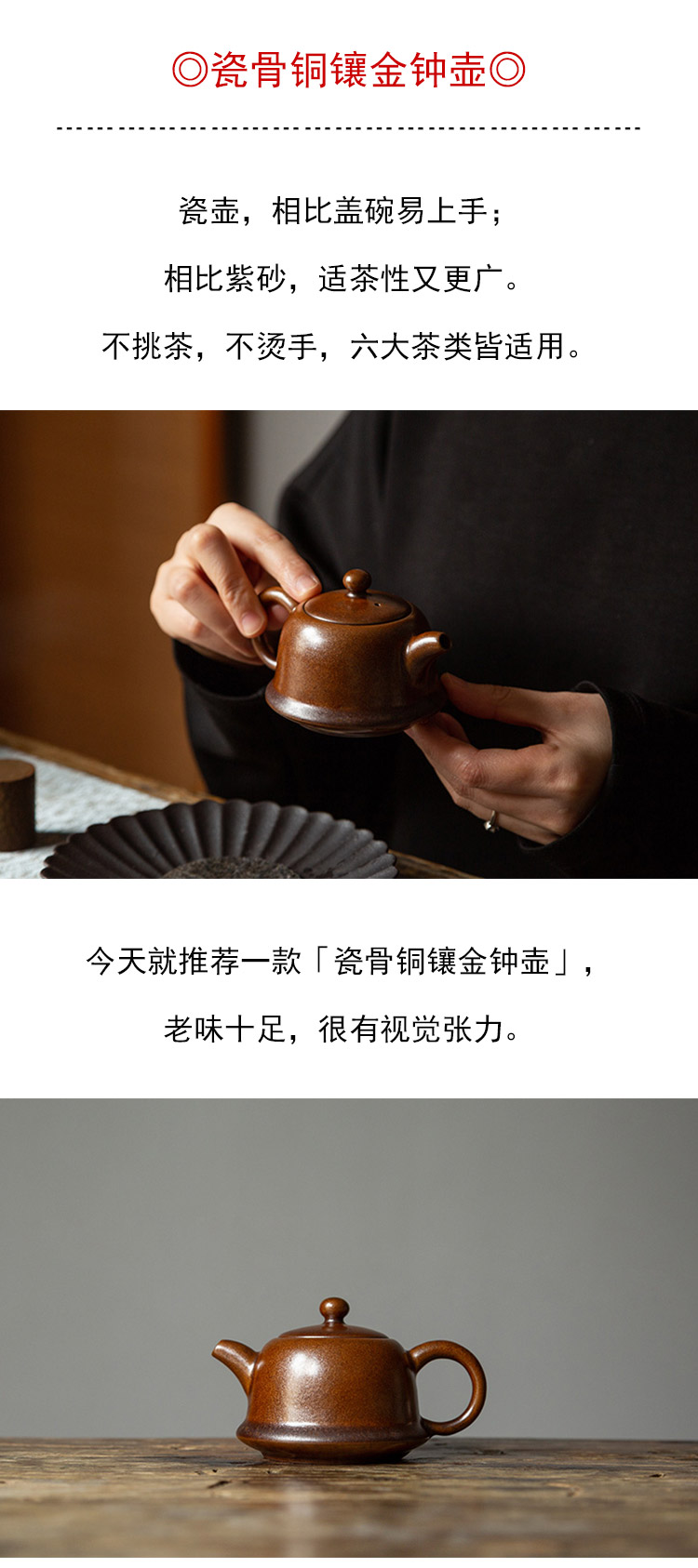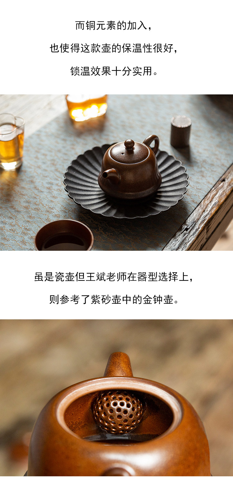 茶香记 瓷骨铜镶金钟壶150ml陶瓷泡茶壶中式器型大气老物件韵味