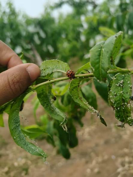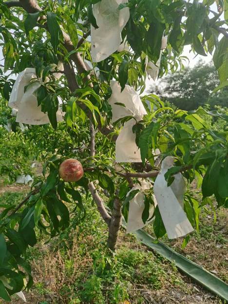 春季疏花疏果,冬季剪枝,也调整行株距,增加桃树的通风透光,减少病虫害的发生。桃子会套袋防虫,果园的生态环境比较好,物种多样,如瓢虫,螳螂,蜘蛛等可以抑制害虫的为害。