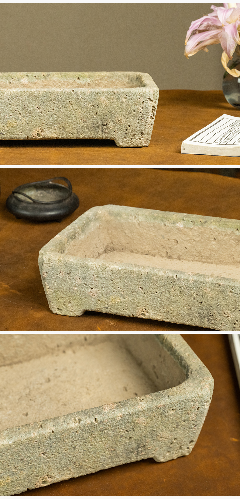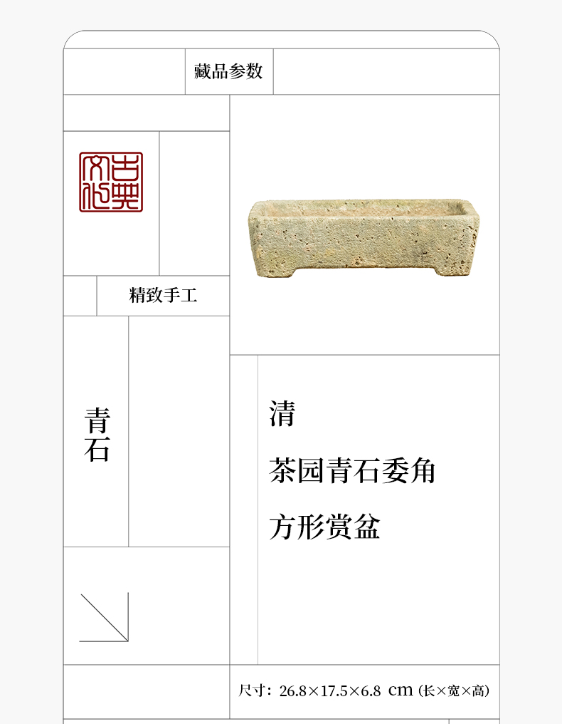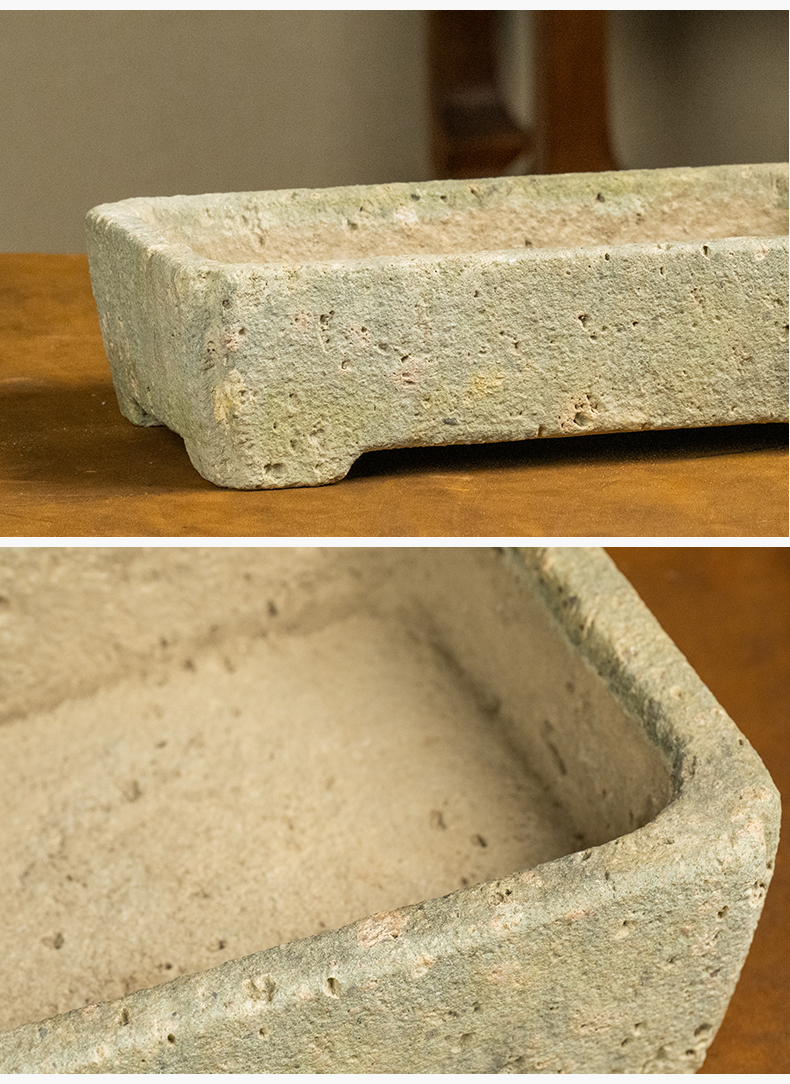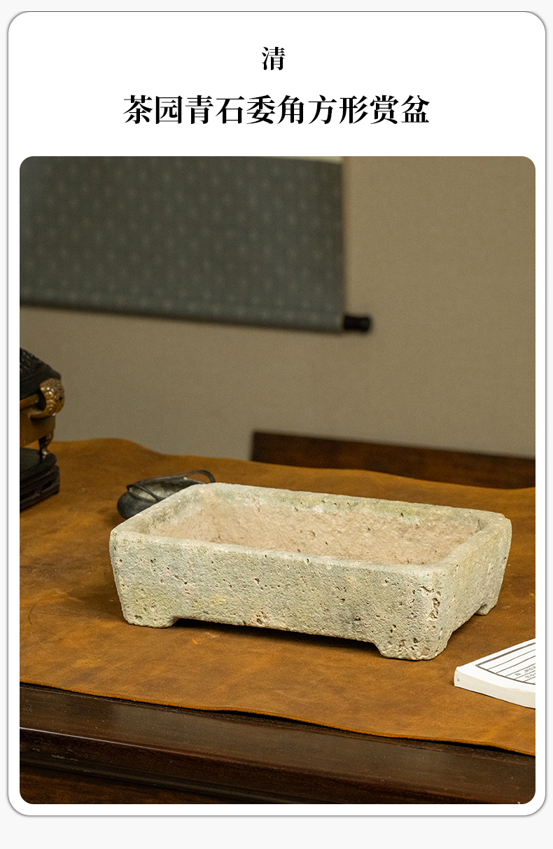 清 茶园青石委角方形赏盆