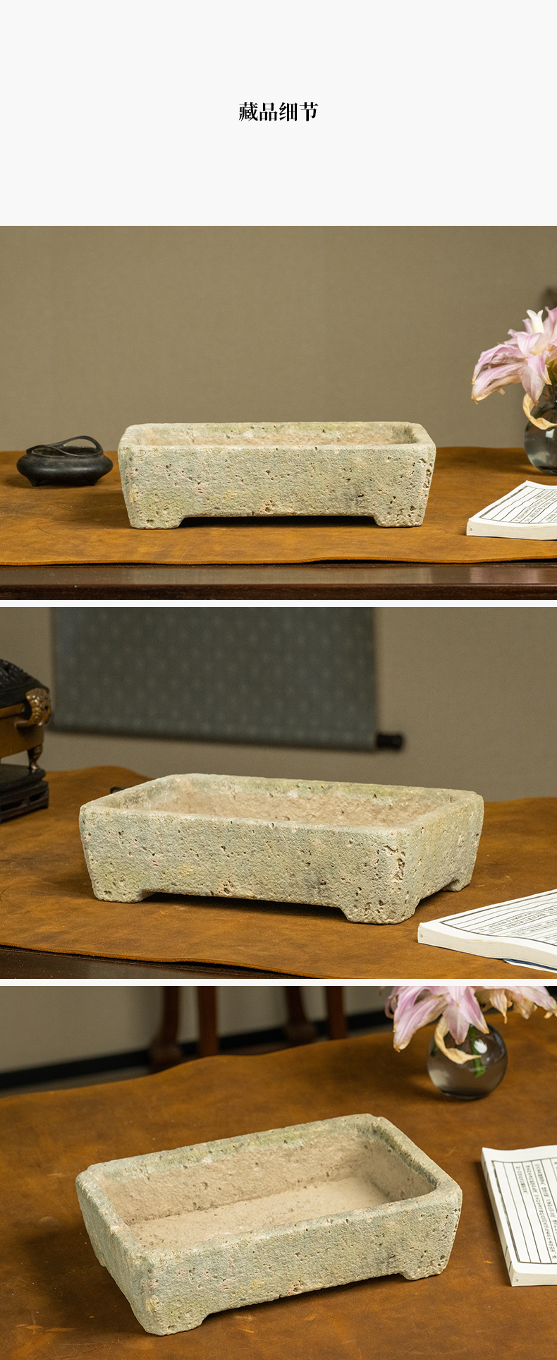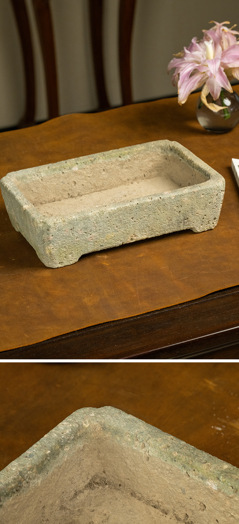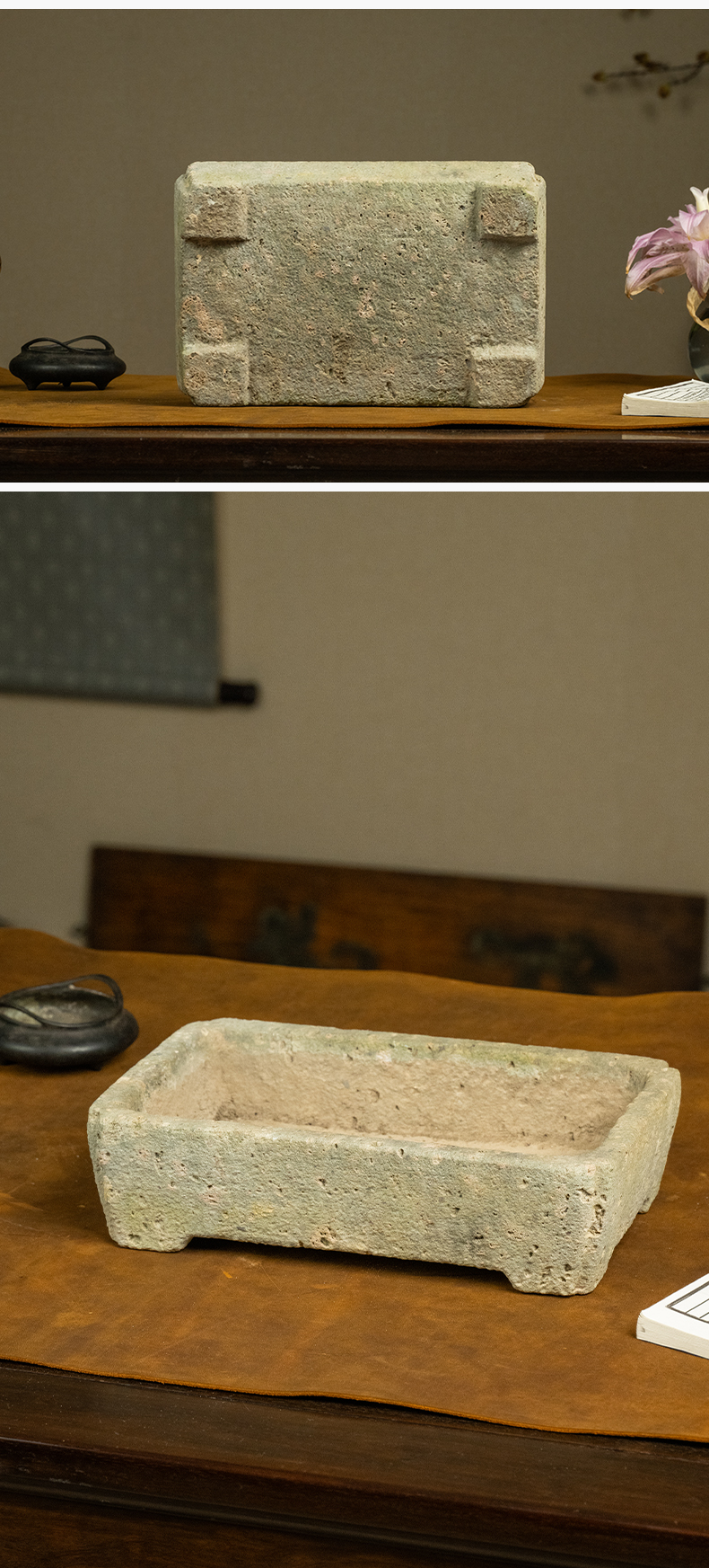 清 茶园青石委角方形赏盆