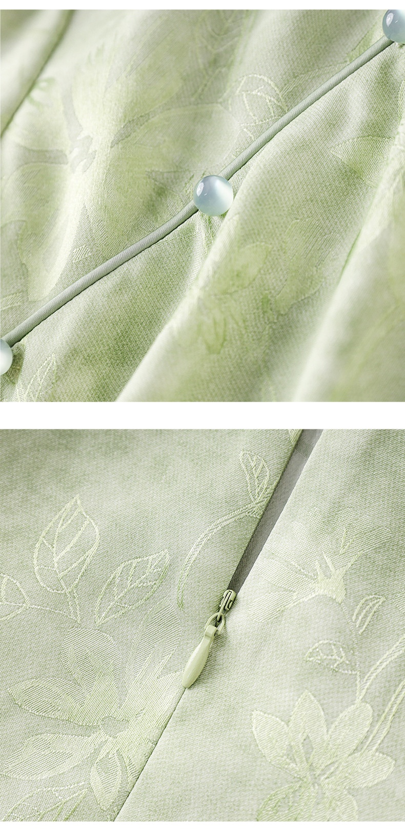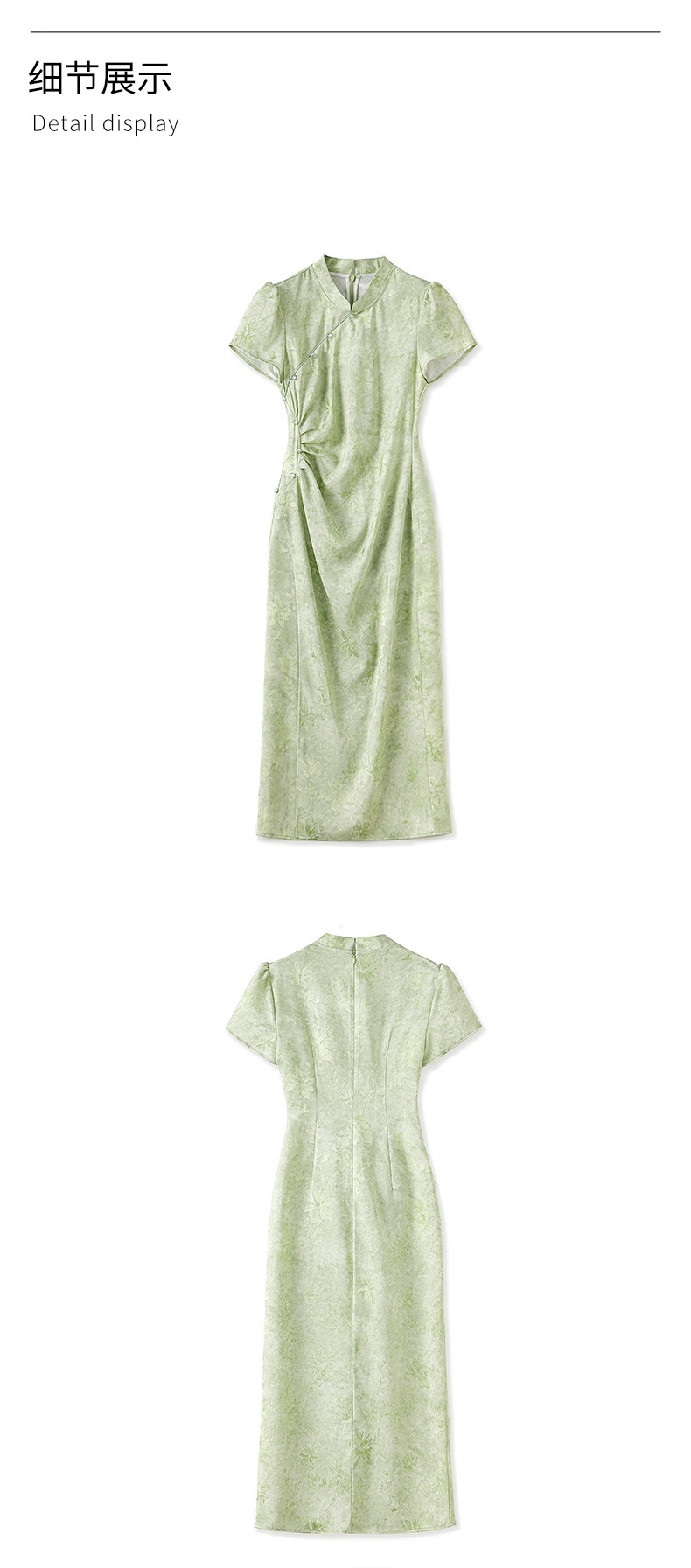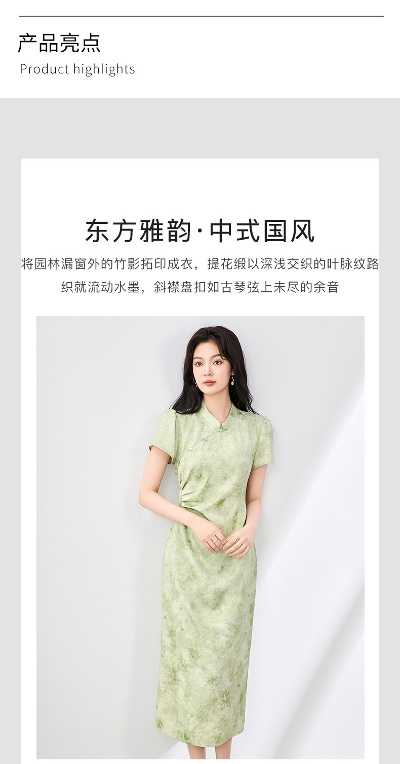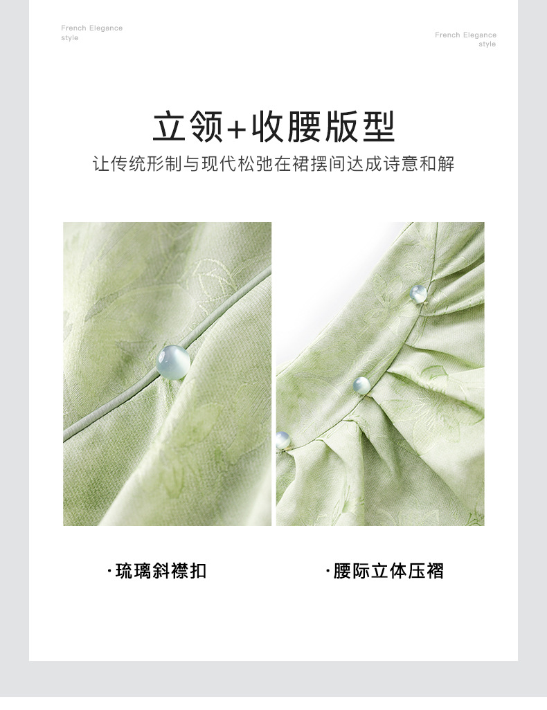 「高货wl」全新升级【铂金会员293/天猫399/差价106】(94832)洛诗琳绿叶提花新中式连衣裙2025夏季收腰显瘦国风旗袍裙wl