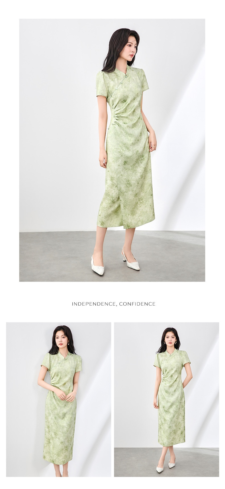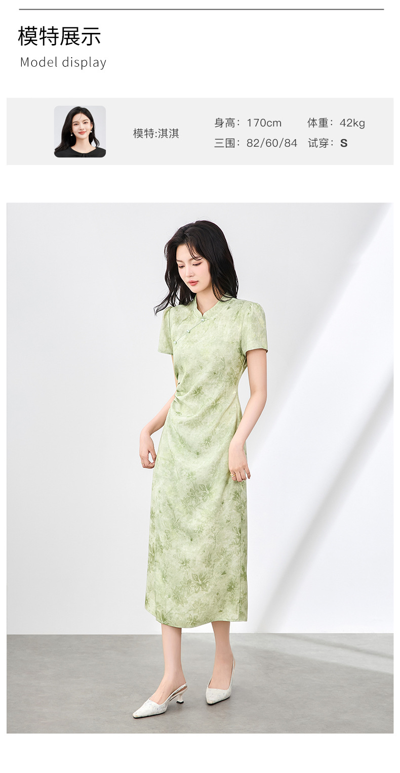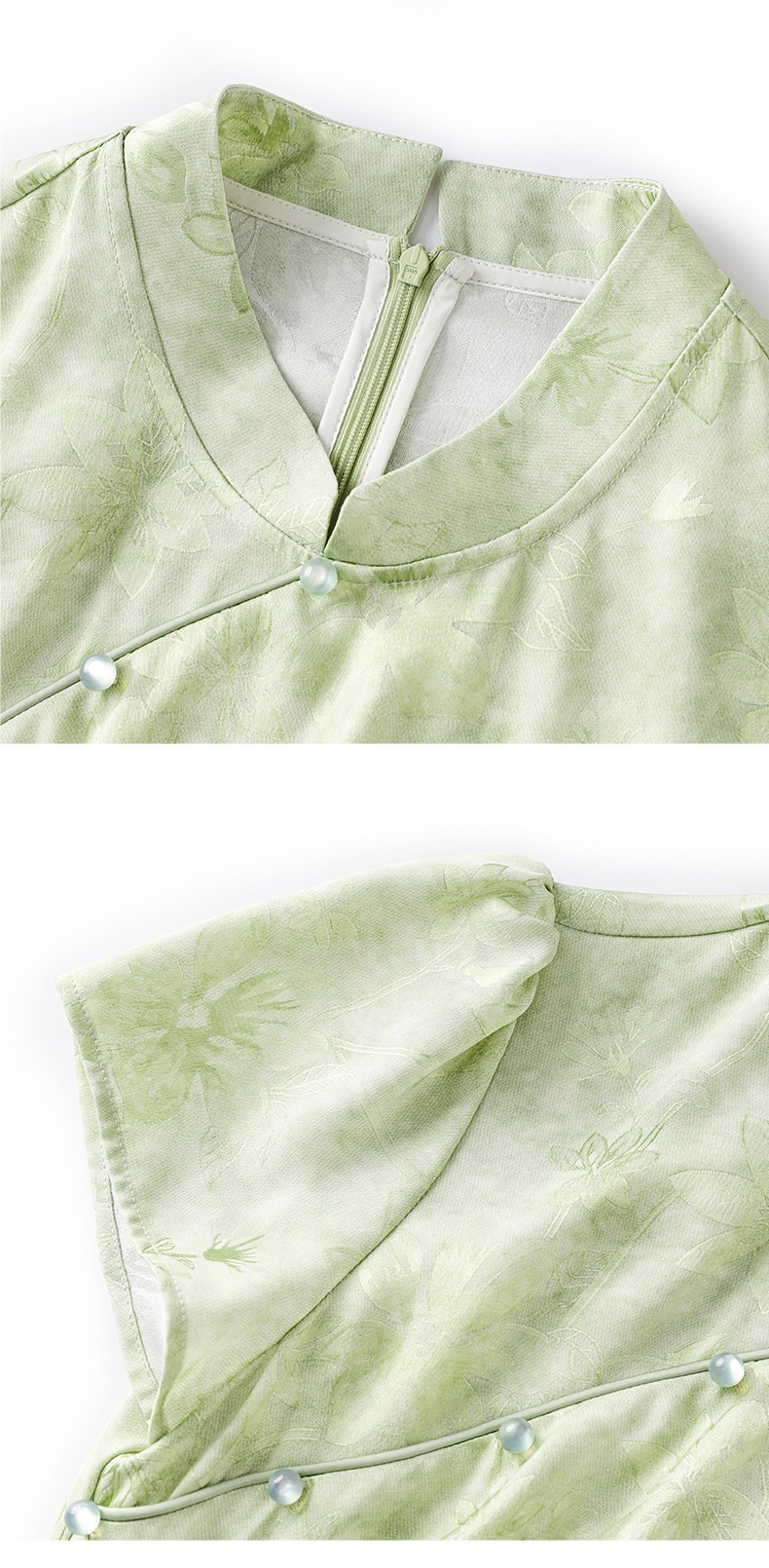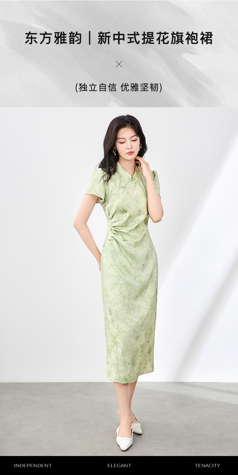 「高货wl」全新升级【铂金会员293/天猫399/差价106】(94832)洛诗琳绿叶提花新中式连衣裙2025夏季收腰显瘦国风旗袍裙wl