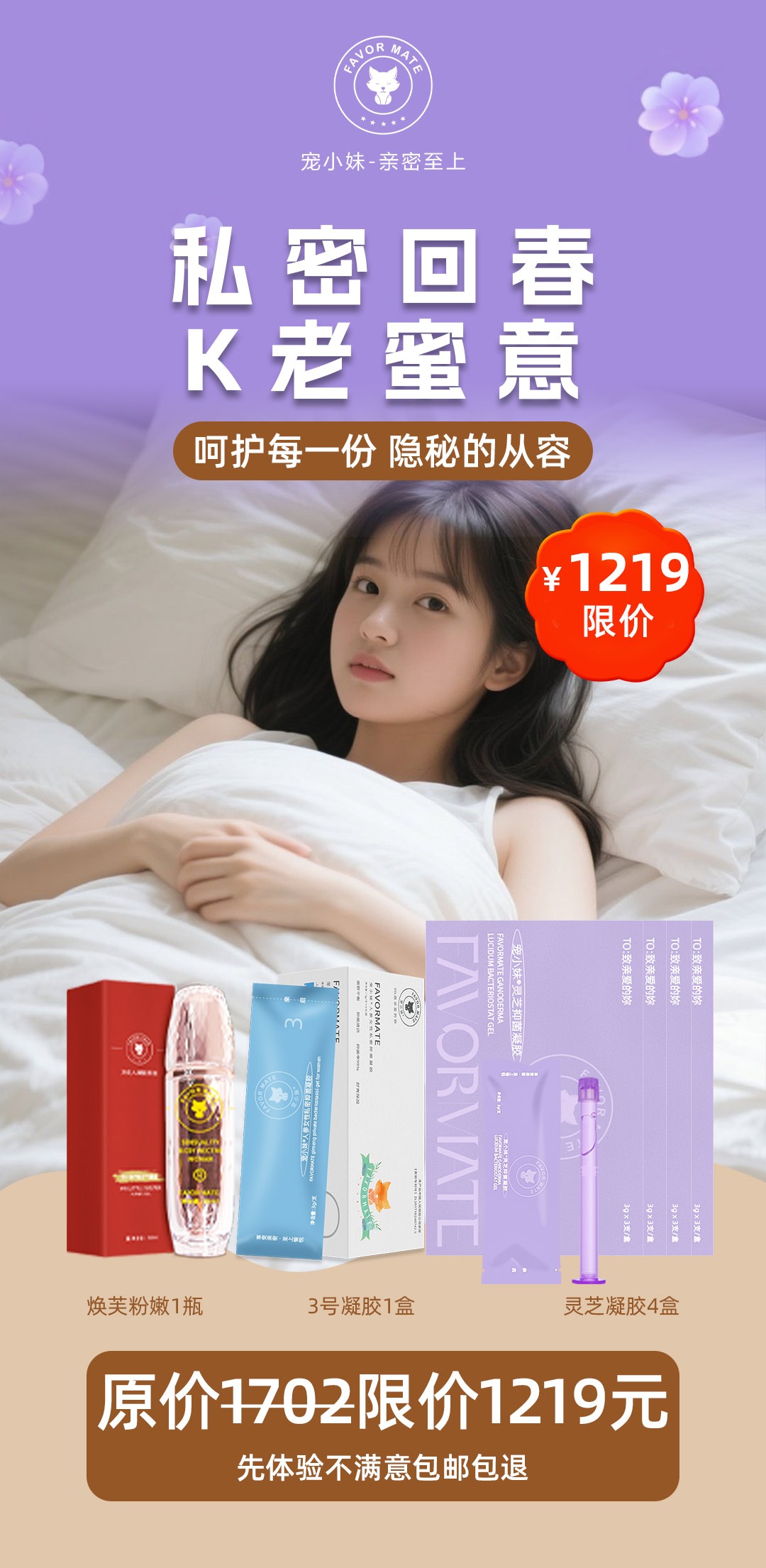 【私密回春 K老蜜意】宠小妹R焕芙凝露1瓶+3号凝胶1盒+灵芝凝胶4盒·呵护每一份 隐秘的从容·私处精致护理