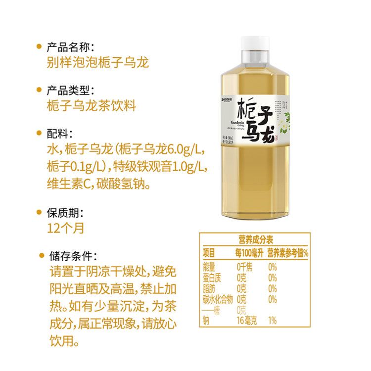 产品特质:国内首个品牌公司将“栀子果实”+乌龙茶结合,并实现无糖的即饮产品!!!无香精添加、非茶浓缩液制取、非调和茶配方。