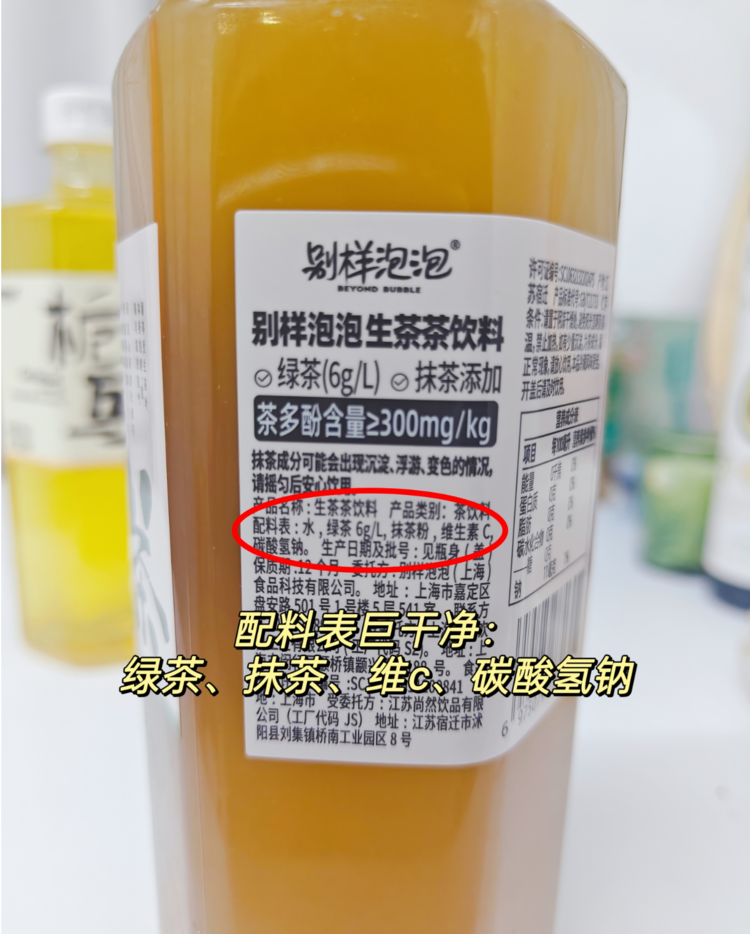 【别样泡泡 生茶/栀子乌龙茶】,比碳酸饮料健康,比白水解渴解腻,跟市面上入口涩感很强的茶饮料完全不一样,比普通的抹茶和绿茶的味道要柔顺很多。味道很清爽,无糖,没有茶的涩味,一口惊艳,我真的爱惨了!