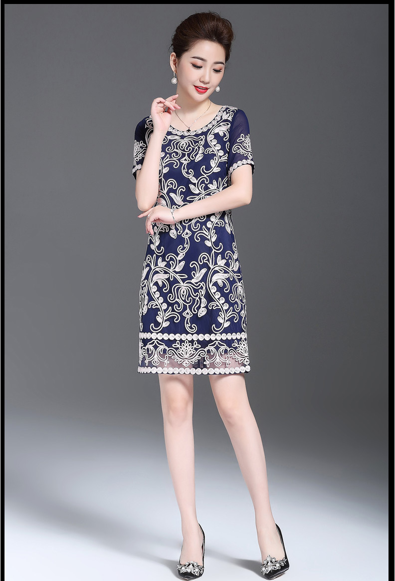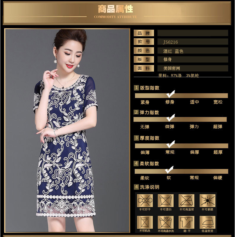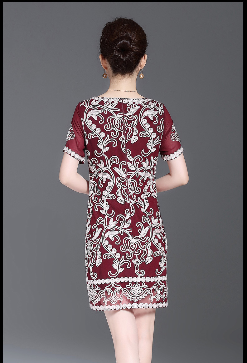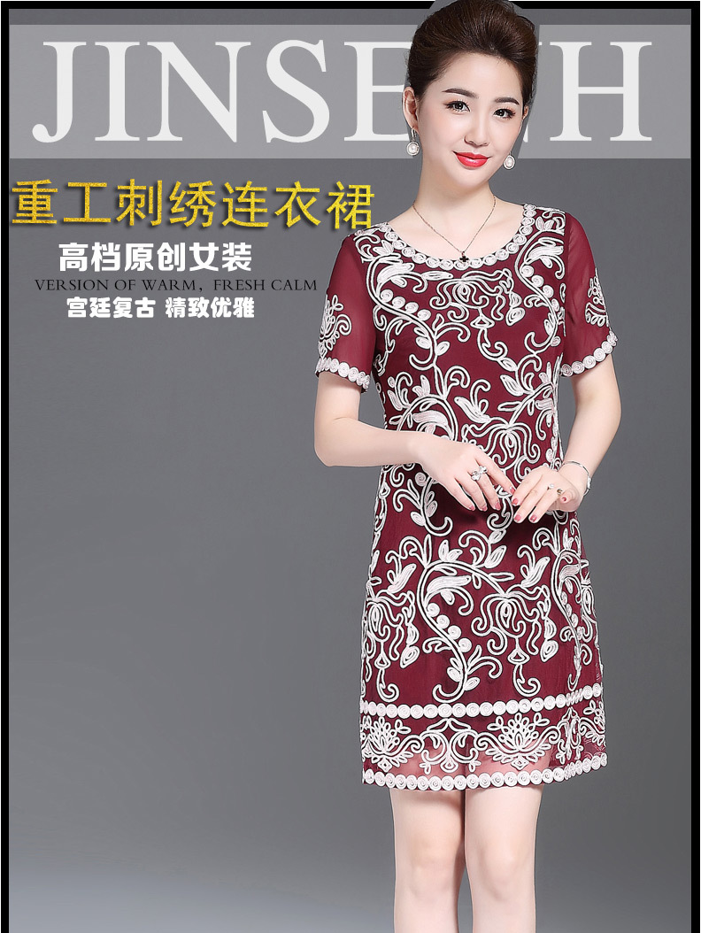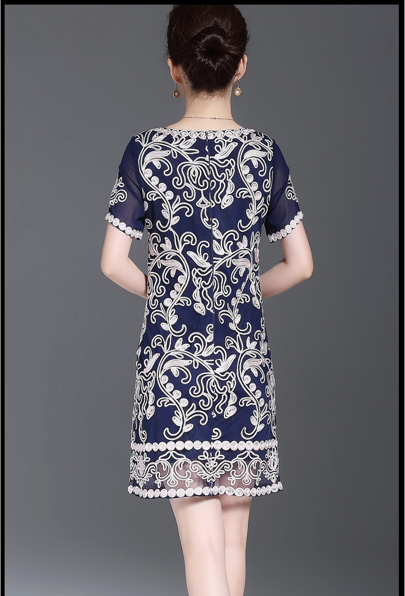 JS6216新款优雅气质修身短袖圆领盘花刺绣连衣裙