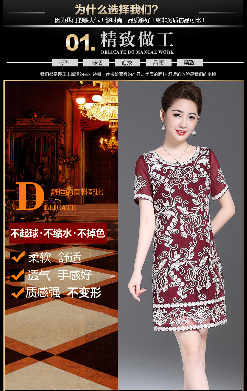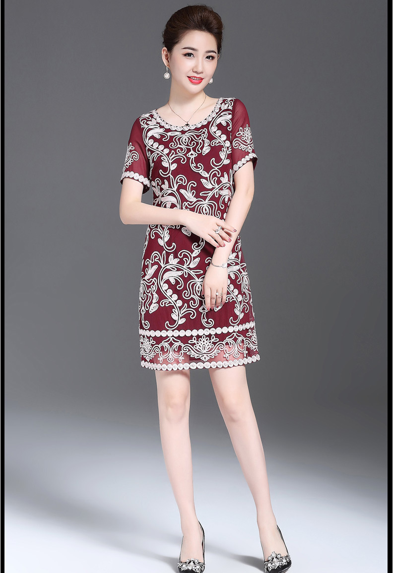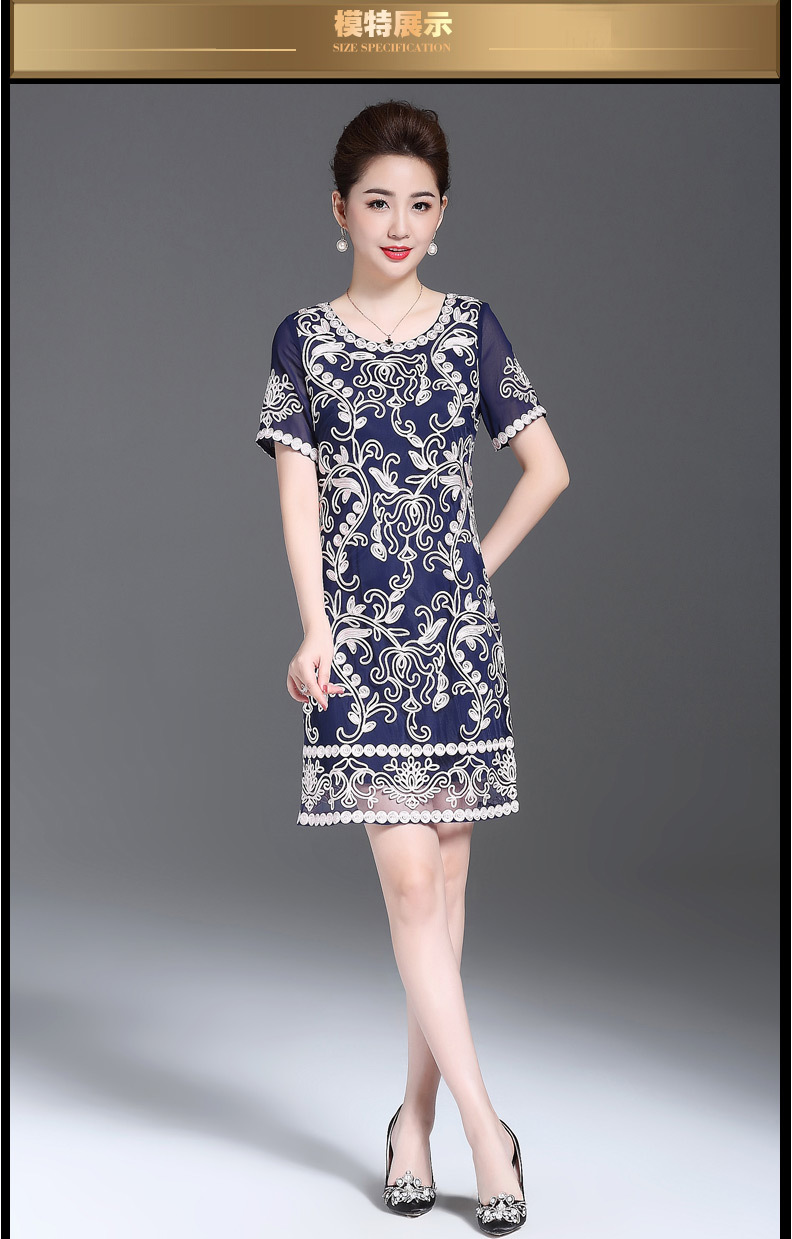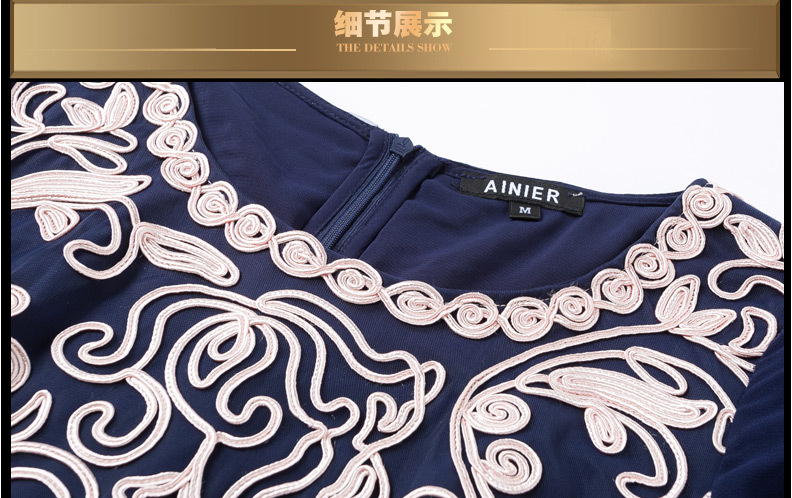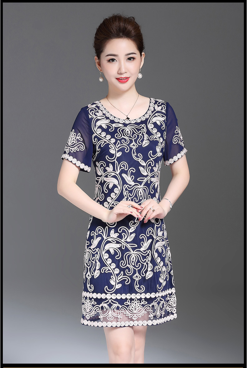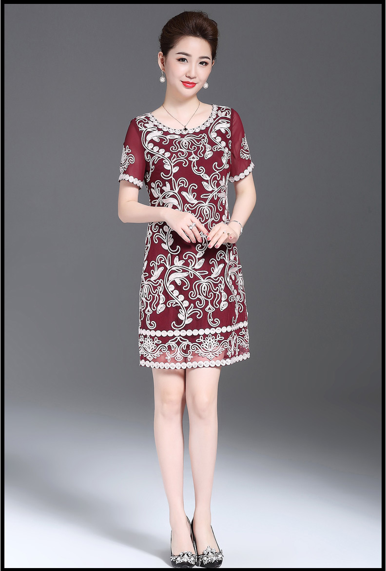 JS6216新款优雅气质修身短袖圆领盘花刺绣连衣裙
