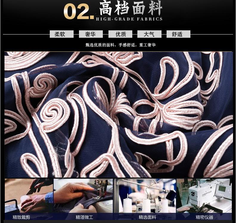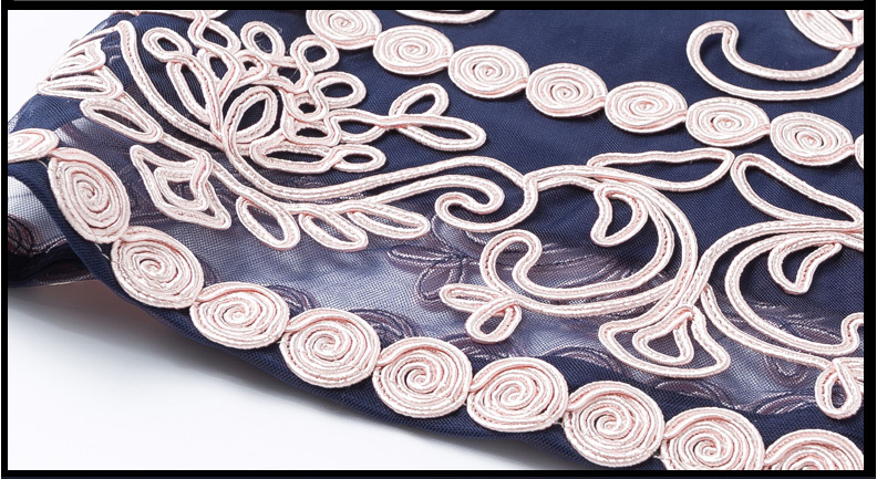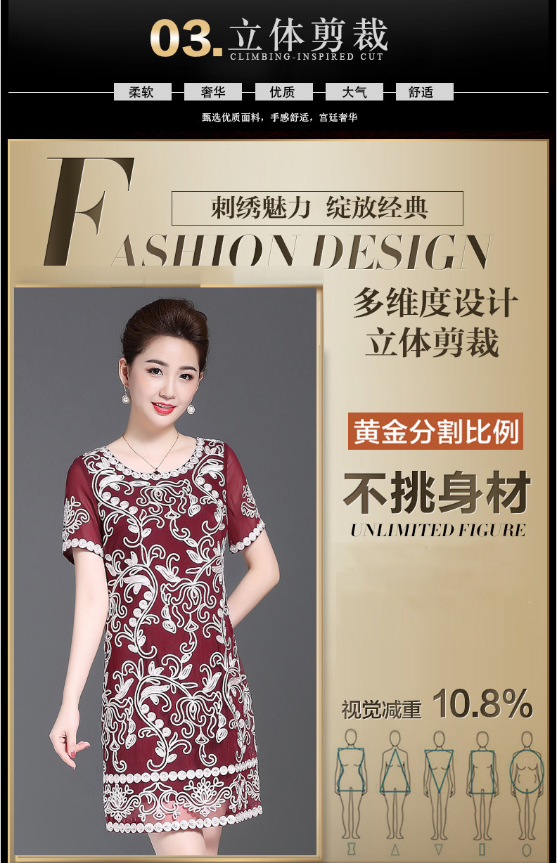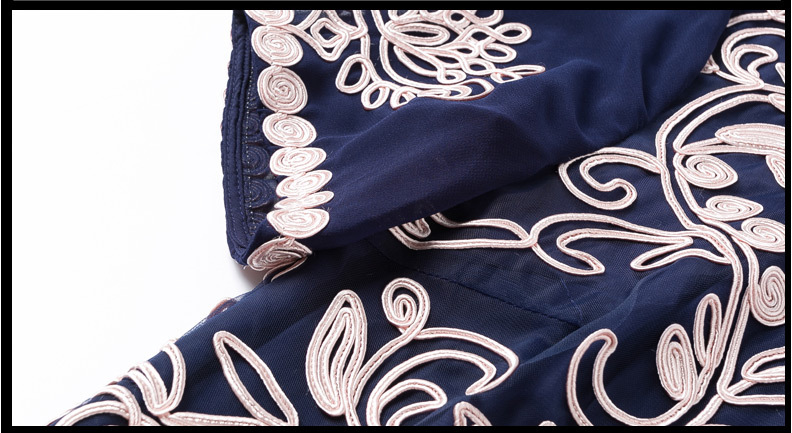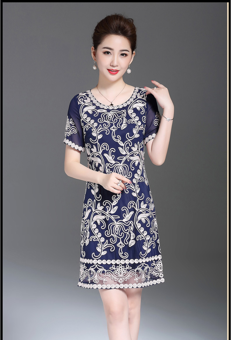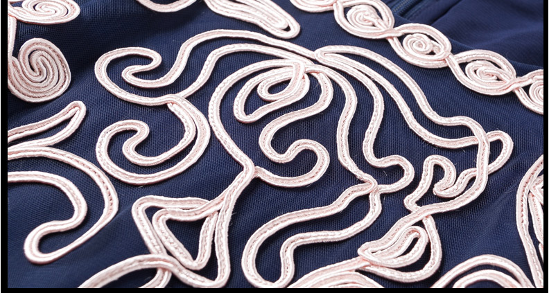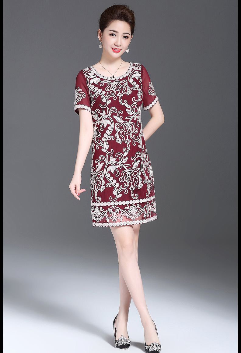 JS6216新款优雅气质修身短袖圆领盘花刺绣连衣裙