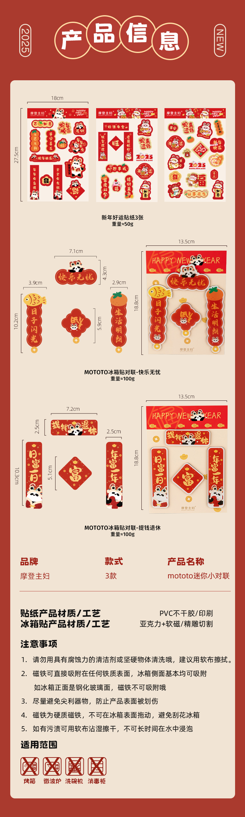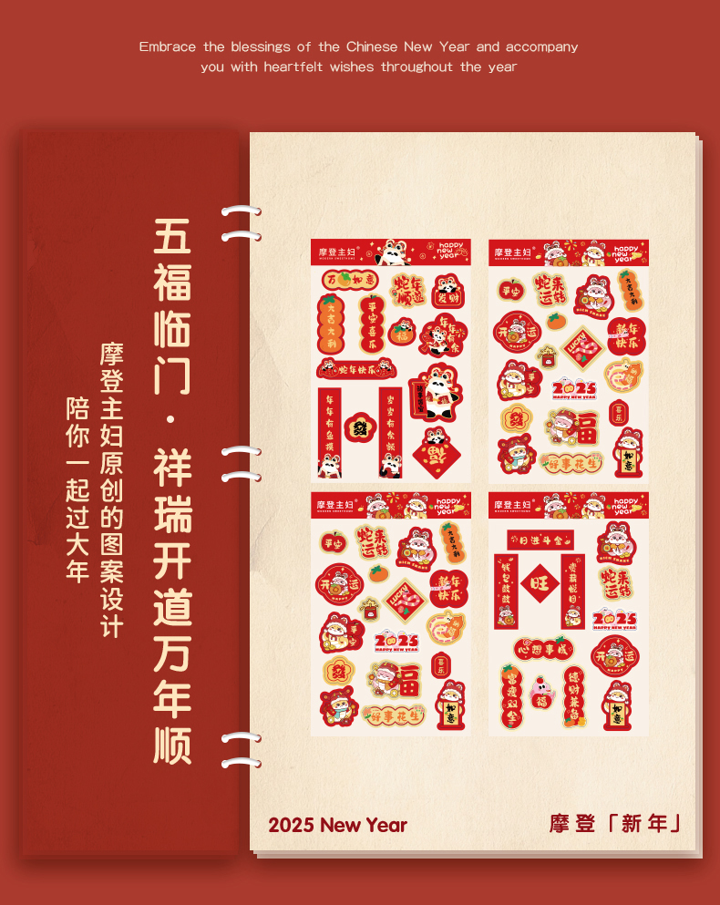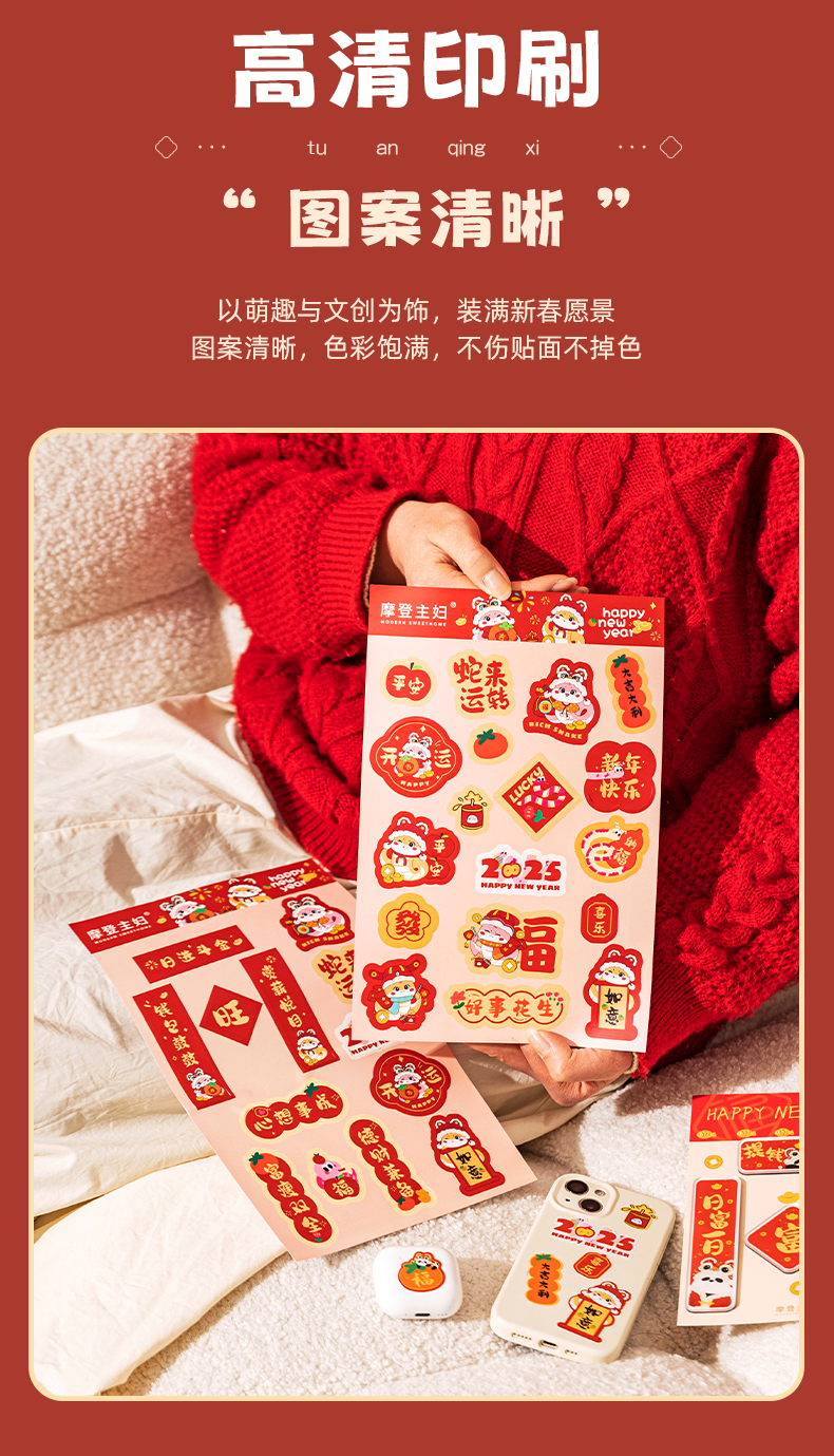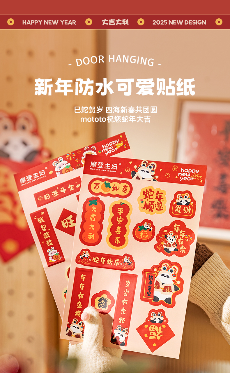 摩登主妇mototo新年装饰贴纸2025年防水迷你小对联不干胶手机贴纸