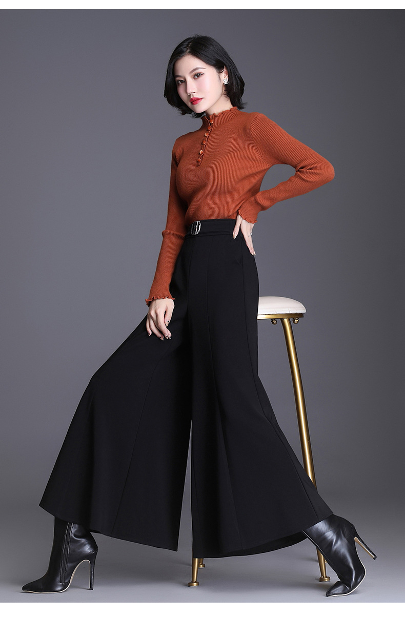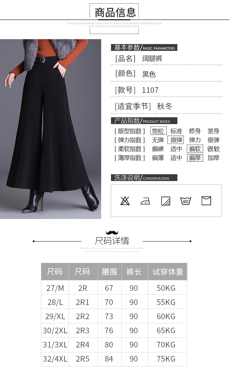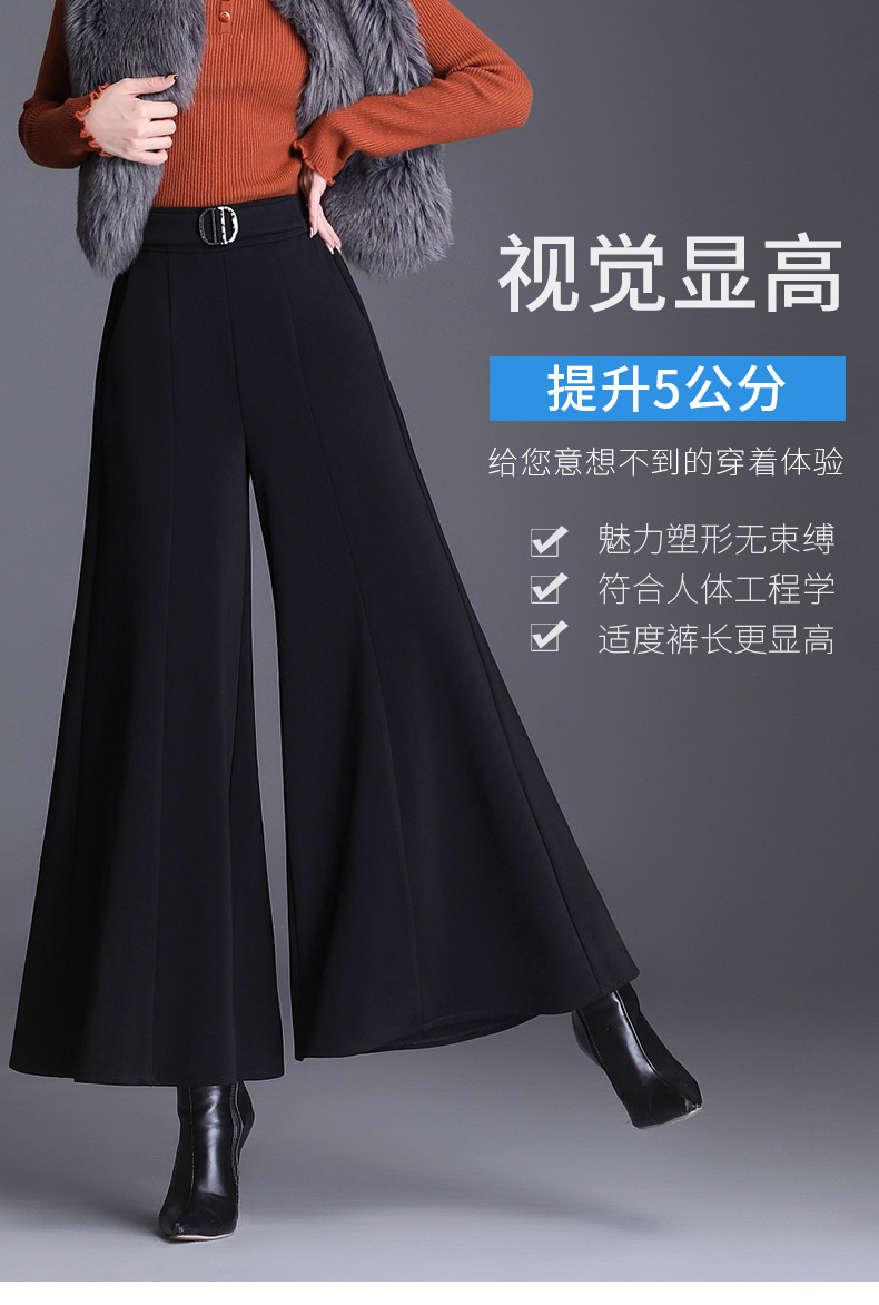 QZF-JYS1107秋冬新品时尚阔腿裤女高腰显瘦大裤脚甩裤显瘦九分百搭裤裙
