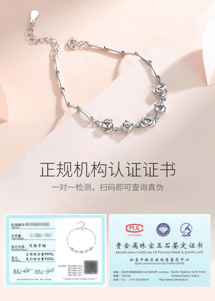 Winy999足银花朝手链送女友闺蜜节日生日礼物