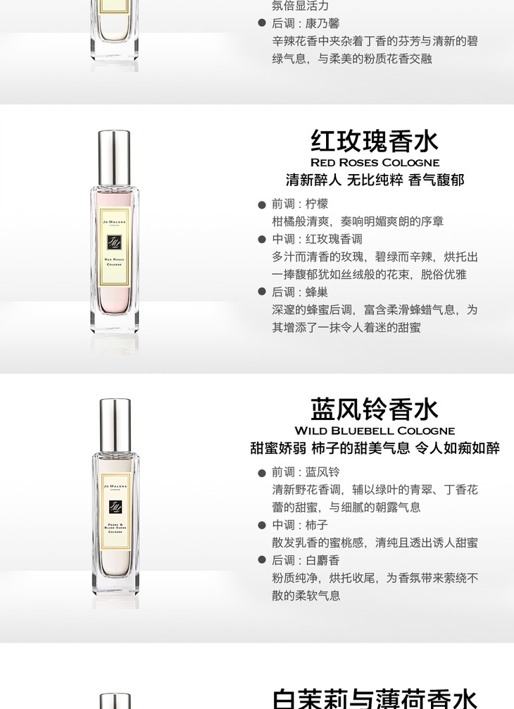 JoMalone祖玛珑 香水30ML(跨境购)英国梨的小苍兰鼠尾草/海盐蓝风铃/樱花