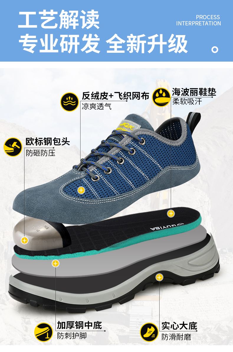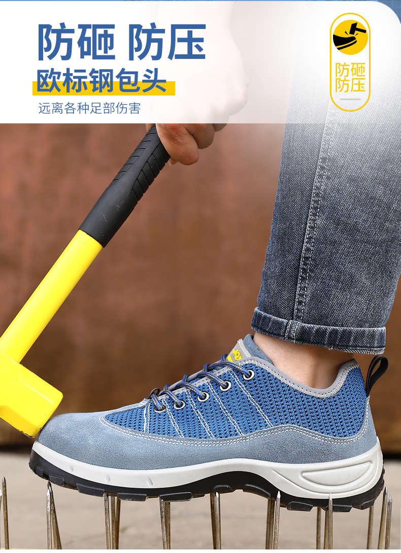 夏季透气劳保鞋男士防砸防刺穿钢包头工地安全工作实心底