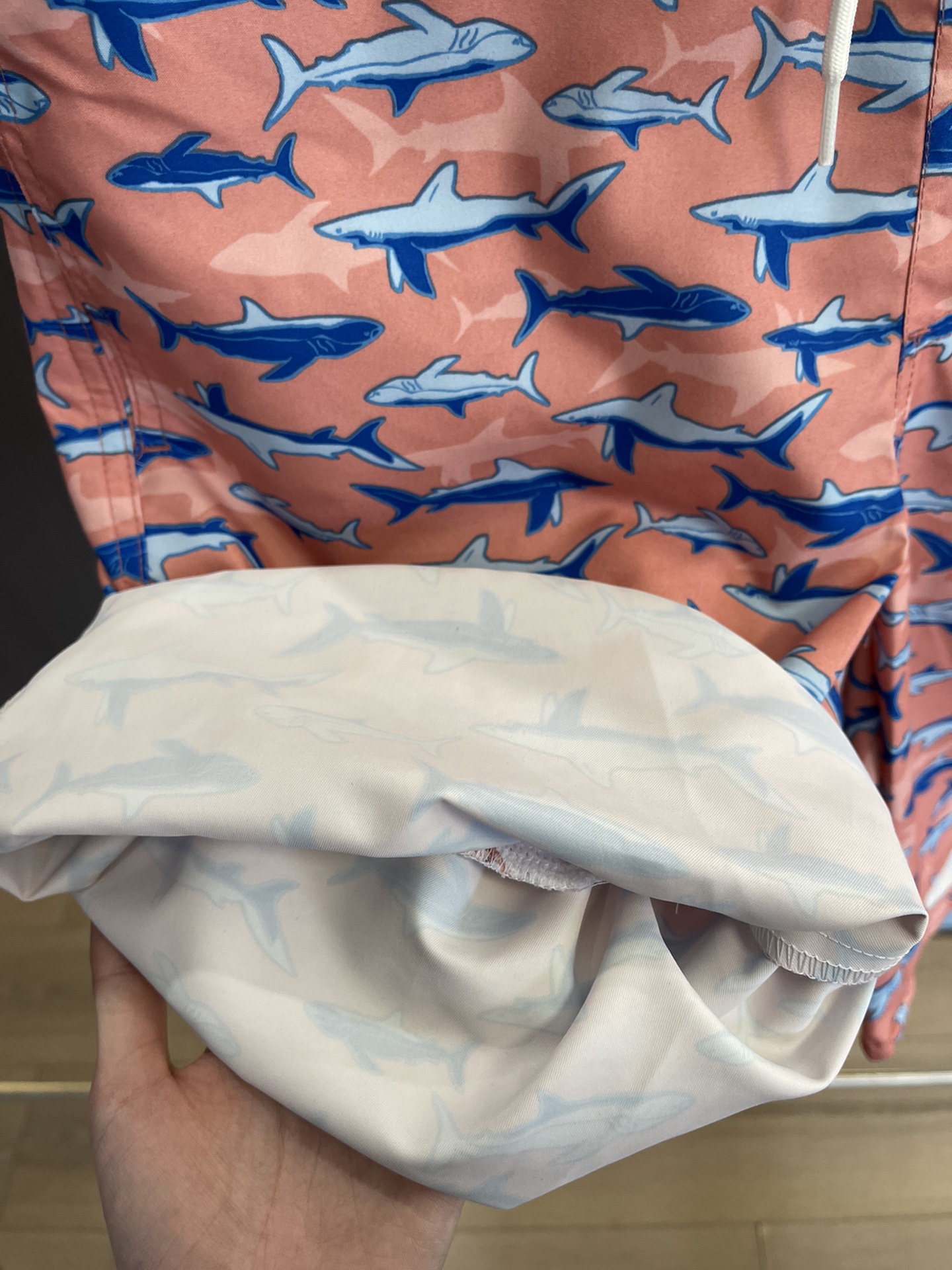 松紧腰带和抽绳设计,拒绝湿、闷、热,让皮肤自由呼吸而且它非常轻盈耐用,速干防泼水,网眼一体式内衬,真的非常好看又好穿!