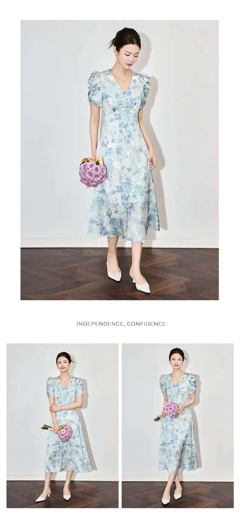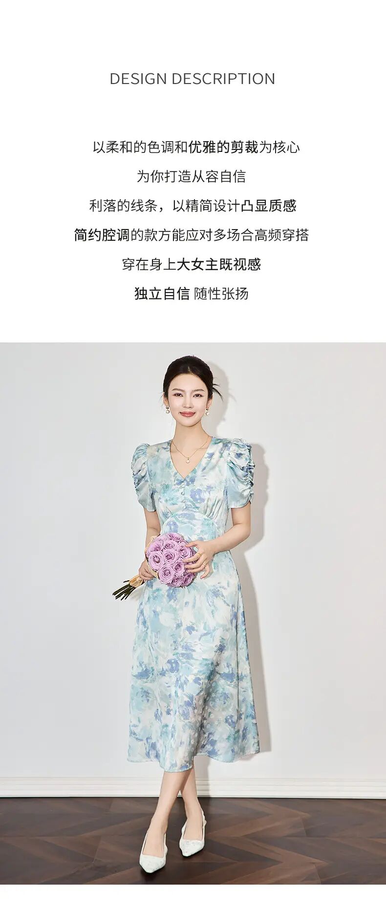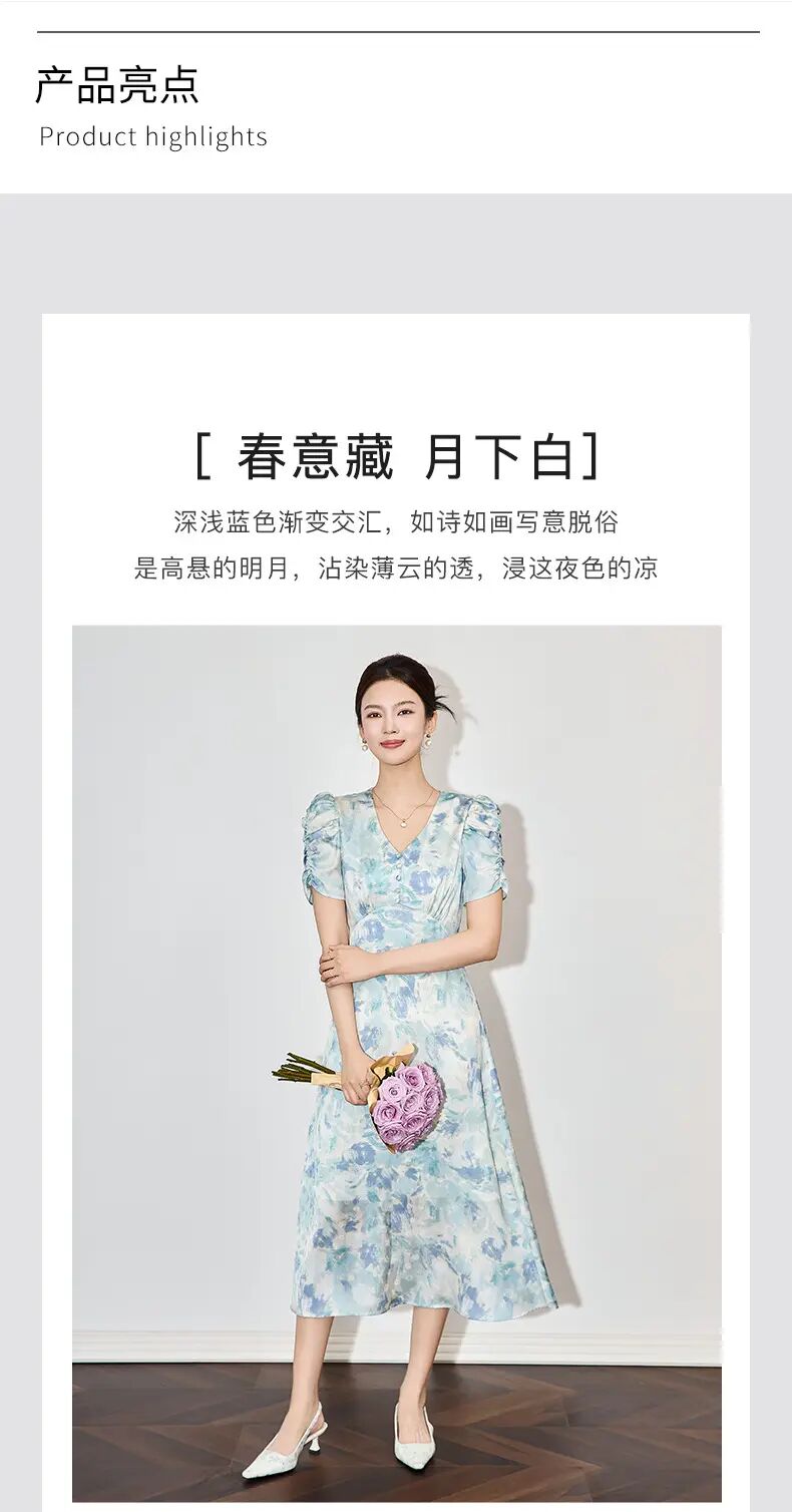 【高货wl】全新升级【铂金会员321/天猫429/差价108】(05458) 洛诗琳法式时尚雅致印花提花裙高腰名媛气质女春连衣裙