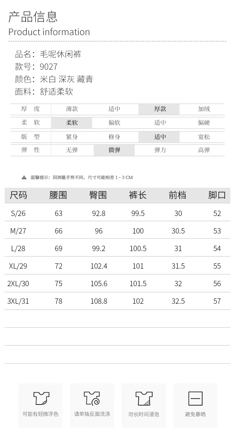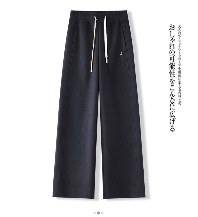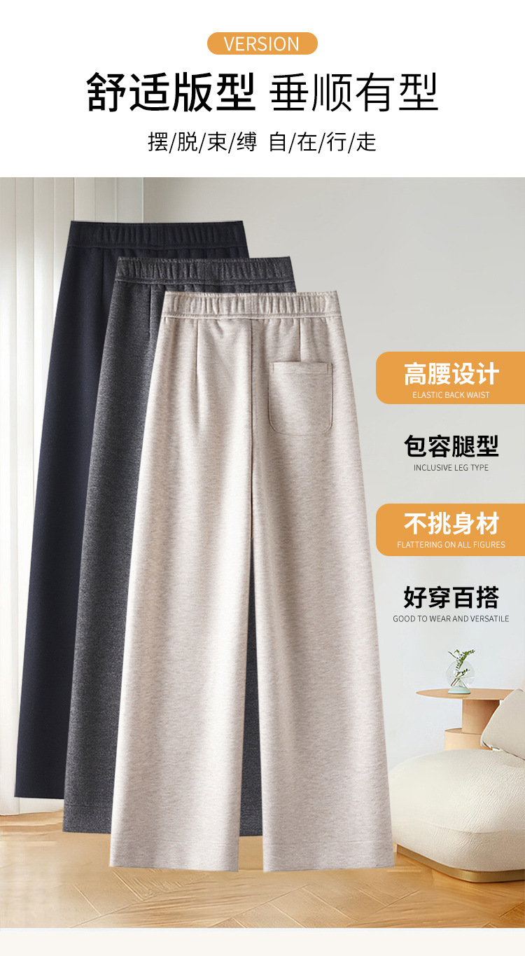 MYX毛呢加厚阔腿长裤松紧腰时尚休闲裤2025年冬季新款垂感修身直筒裤