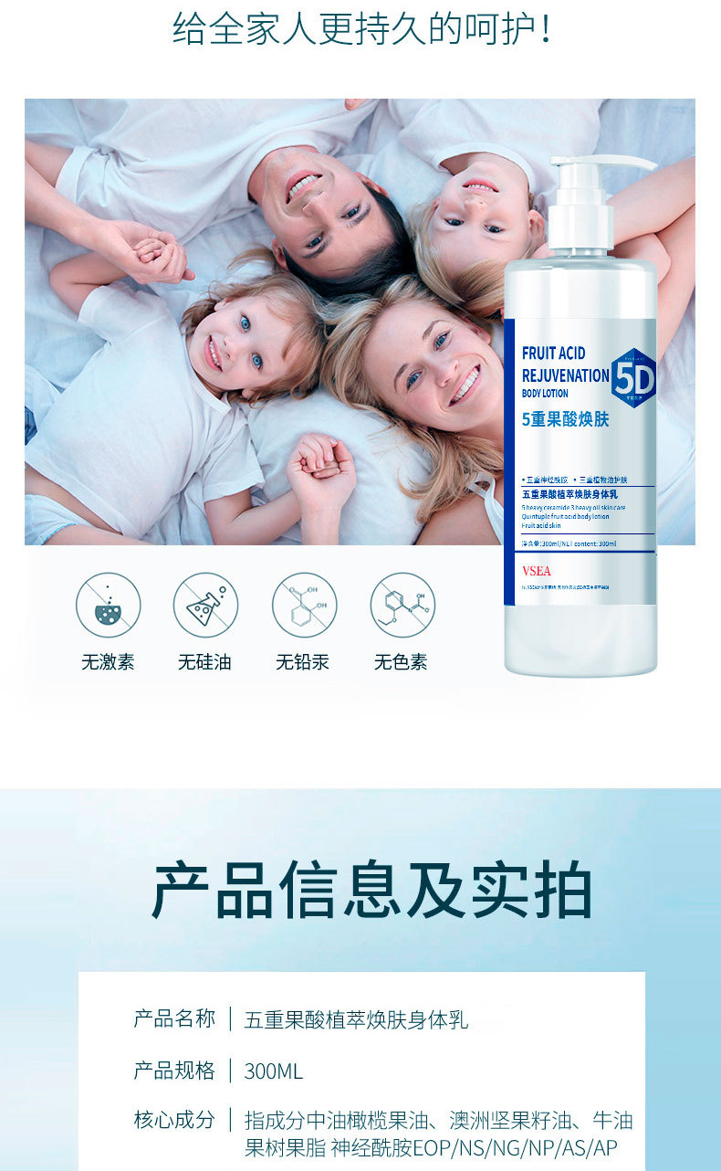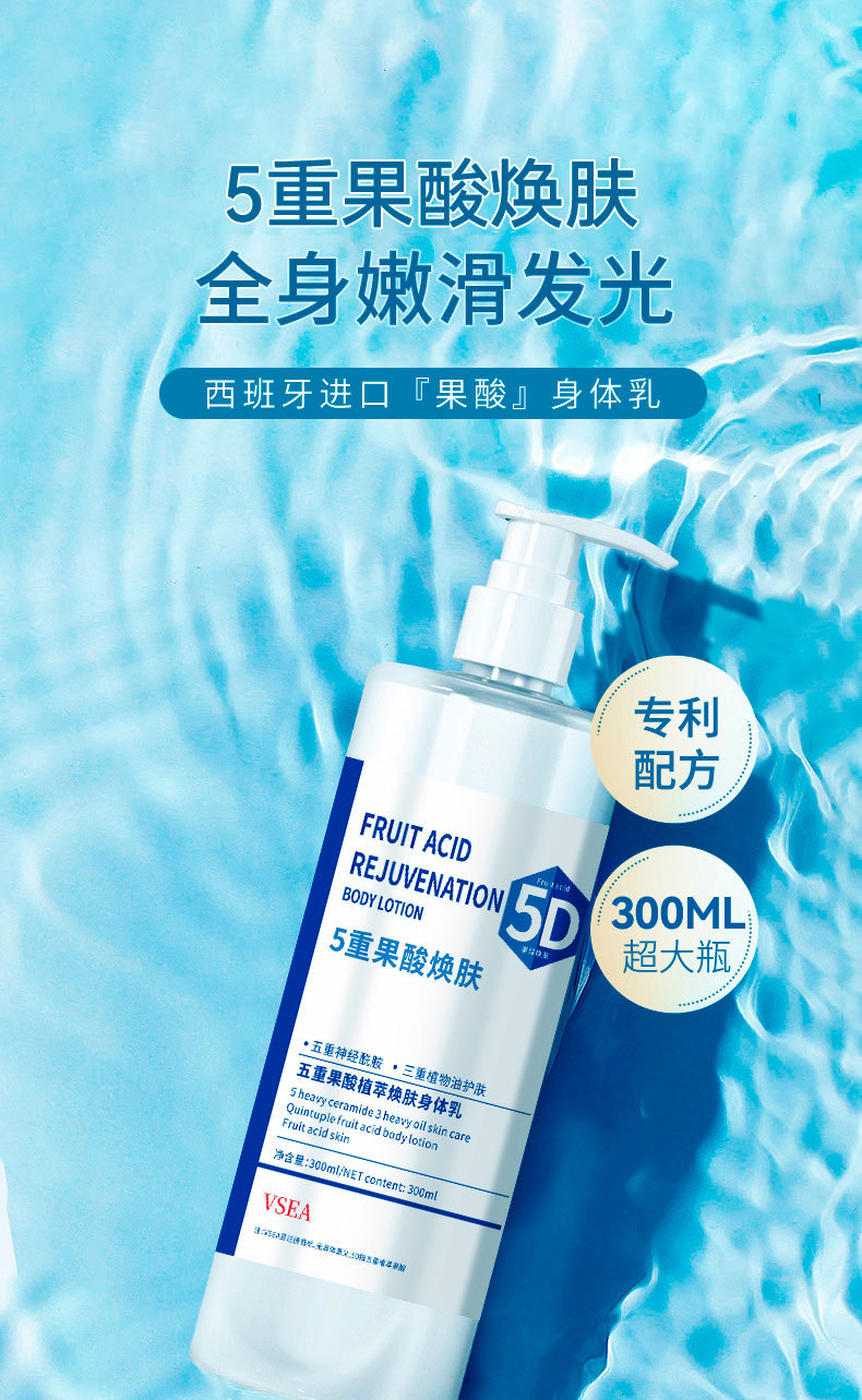 【5重果酸焕肤,全身嫩滑发光】VSEA五重果酸换肤身体乳 保湿清爽不油腻 秋冬男女全身保湿霜-QQ