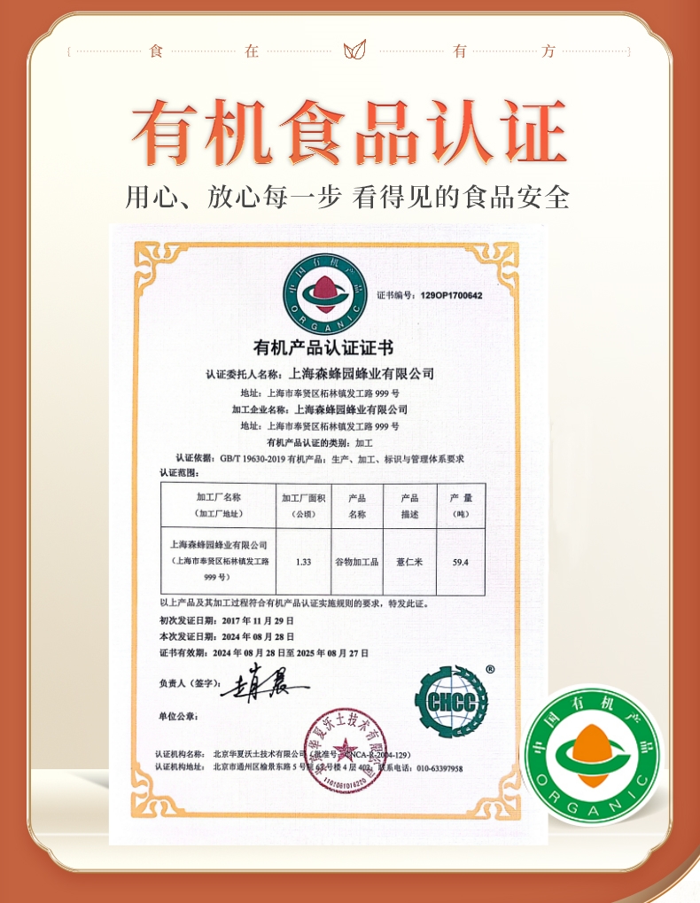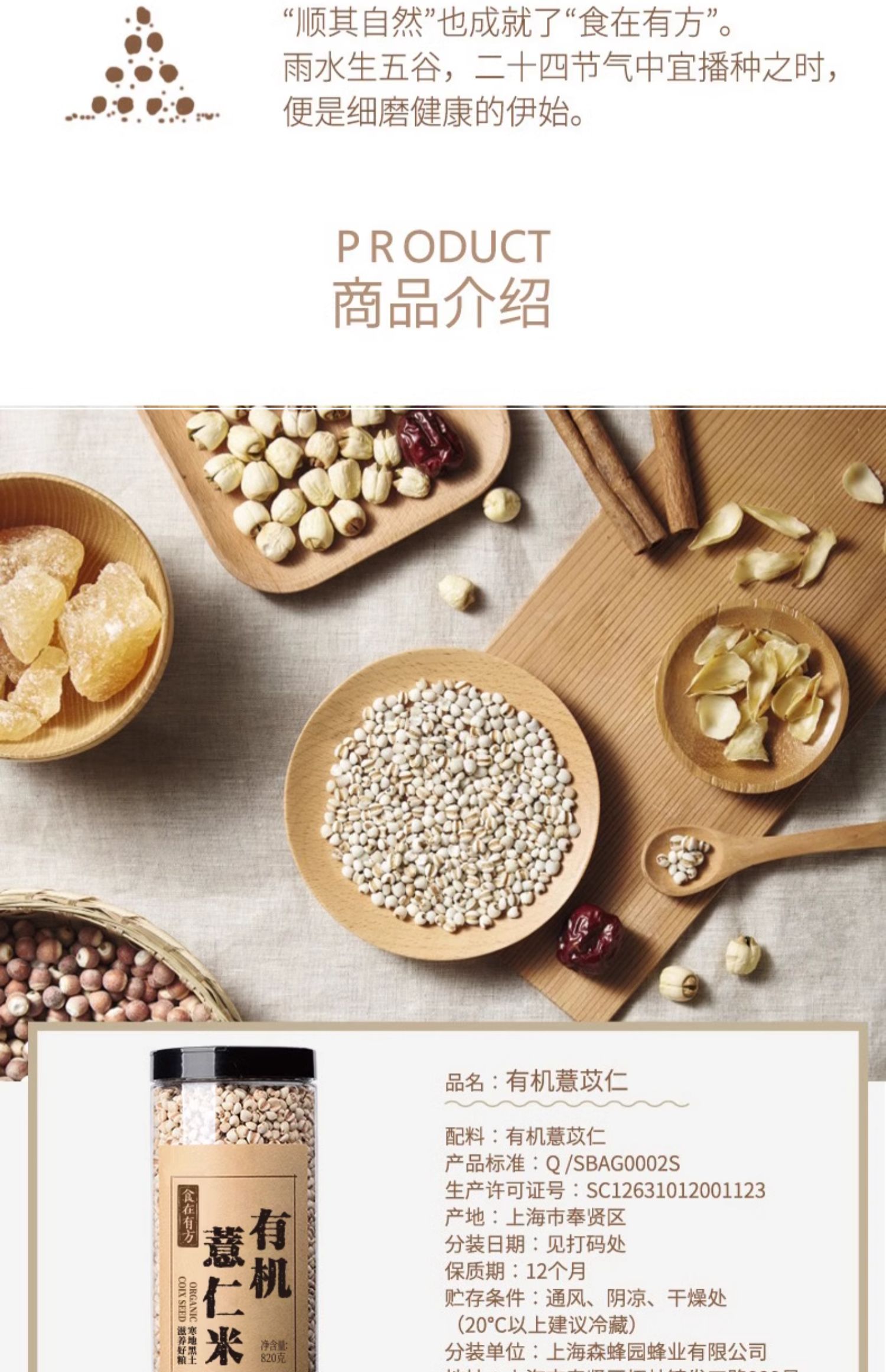 【新鲜市集】食在有方 有机薏仁米 820g(保质期至2026年3月)