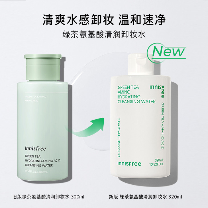 👑悦诗风吟绿茶保湿氨基酸卸妆水320ml-23版 ✨悦诗风吟绿茶卸妆水全新升级!清爽水感卸妆,温和洁净~ 🟢美肤绿茶+氨基酸复合物,卸妆后水润也不紧绷 🍃含有菖蒲根提取物的胶束粒子,像磁铁一样吸附残留污垢及残妆 👍温和洁净卸妆✅,焕亮肤色✅,水润保湿✅