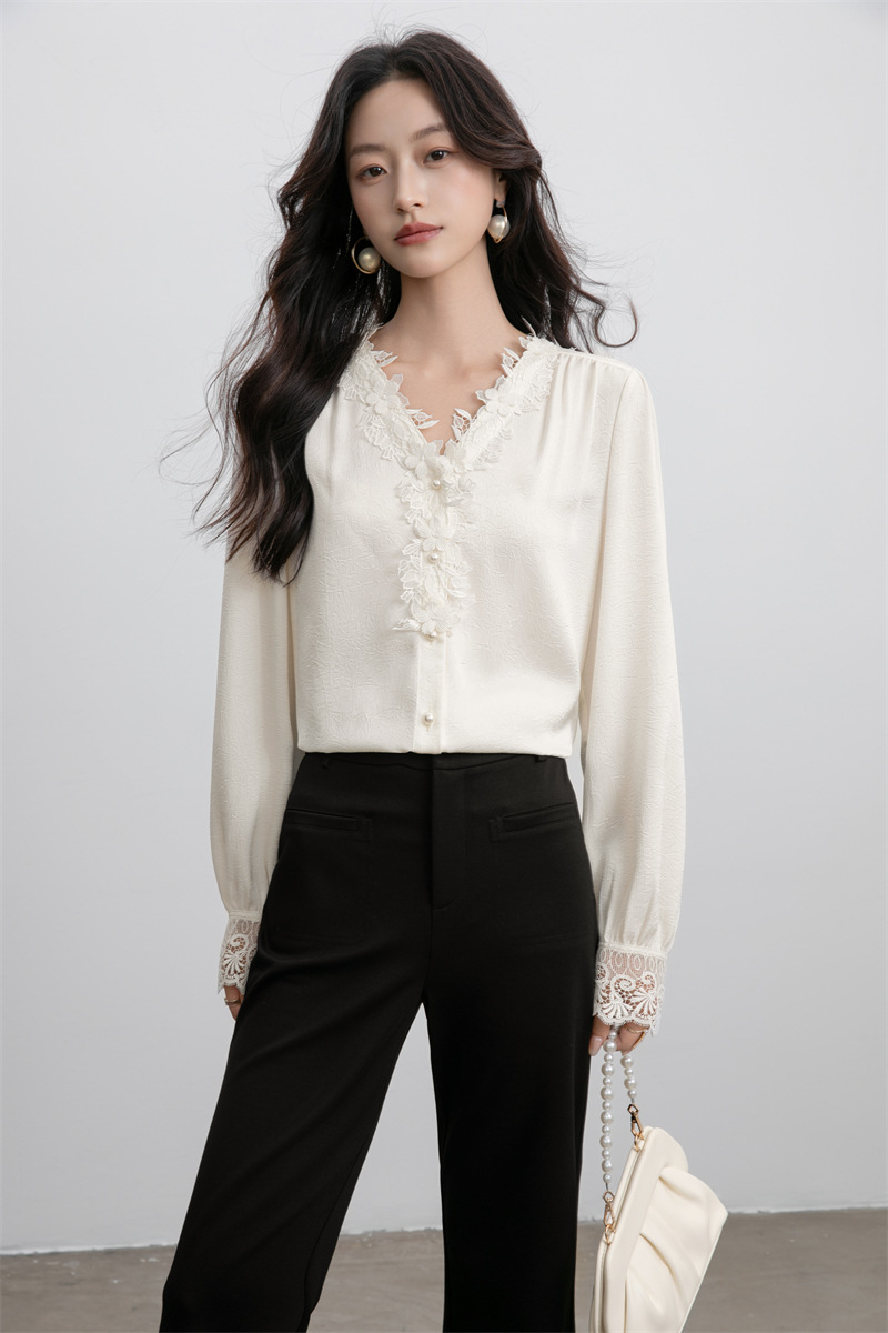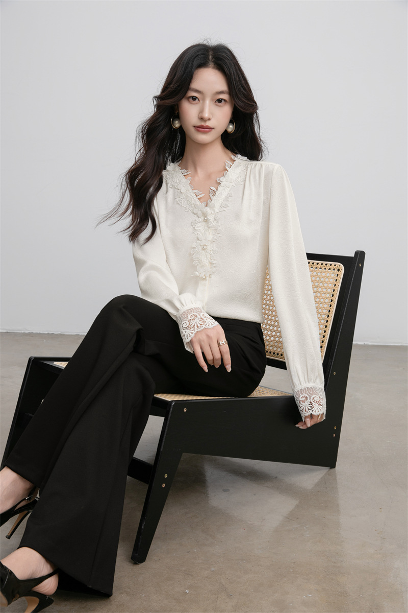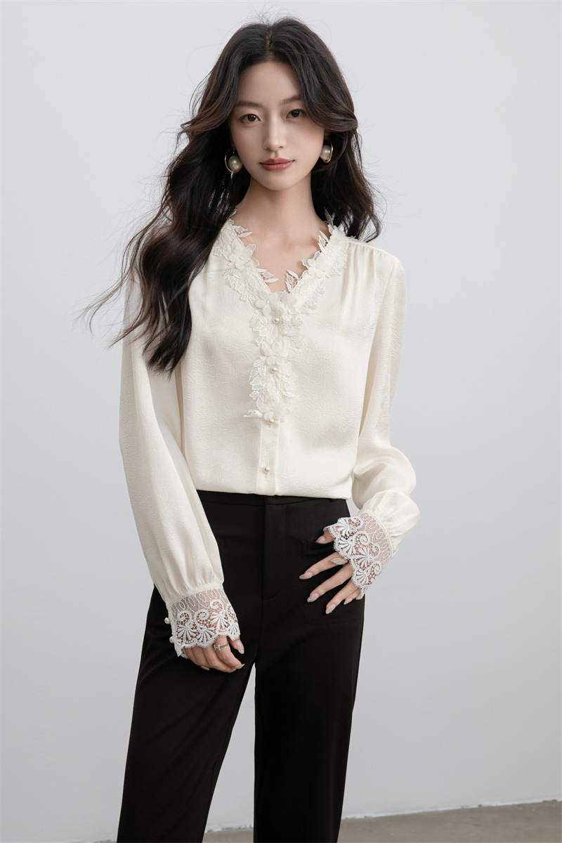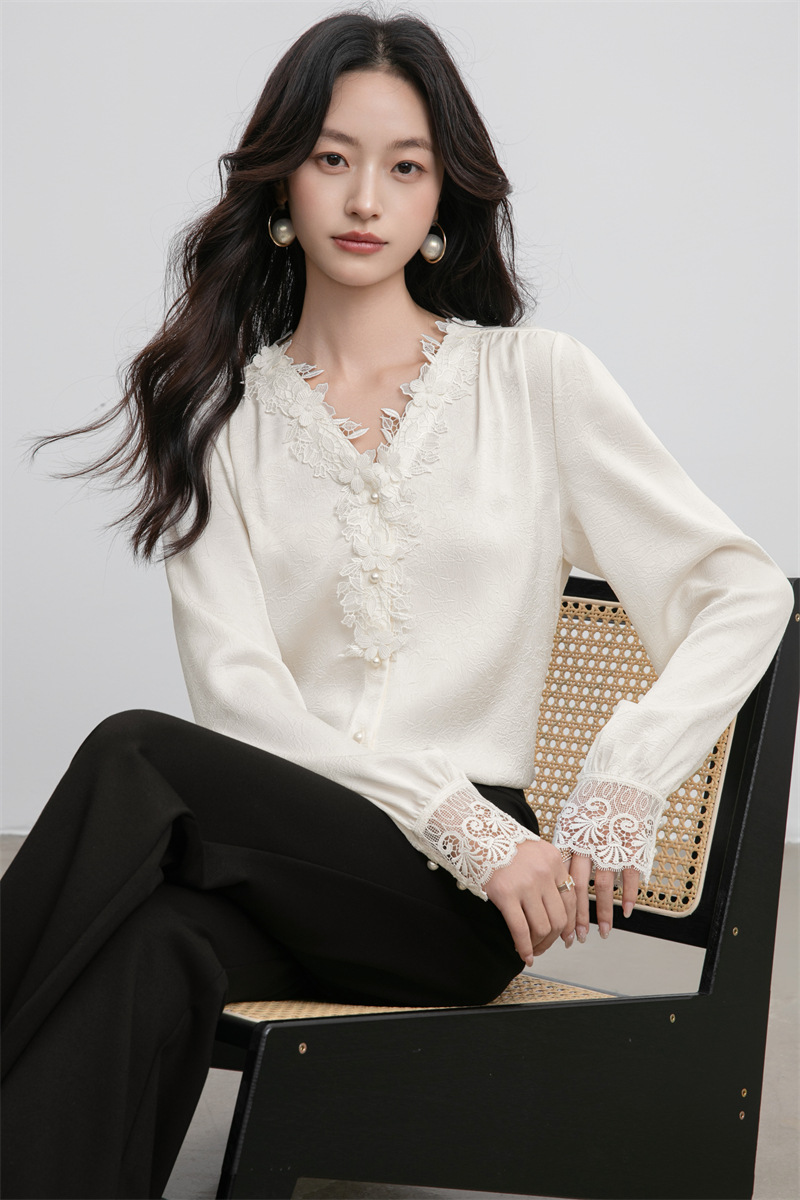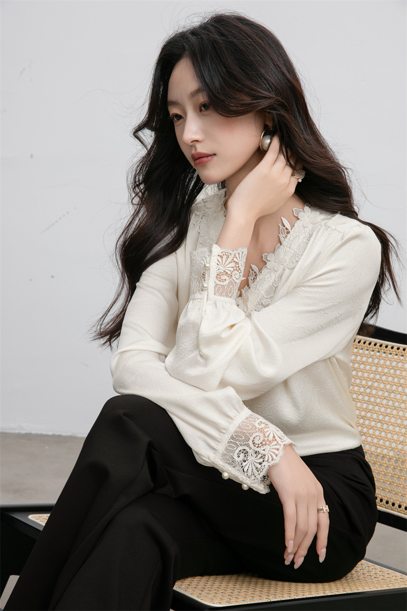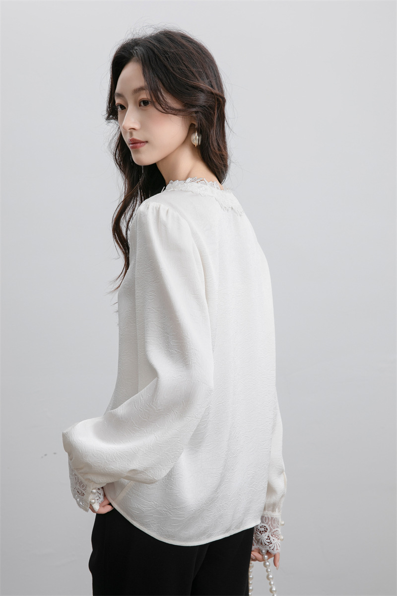 「自」全新升级【铂金会员174/天猫229/差价55】(75528)洛诗琳法式气质蕾丝领衬衫2025秋季新款设计感雪纺衫上衣女