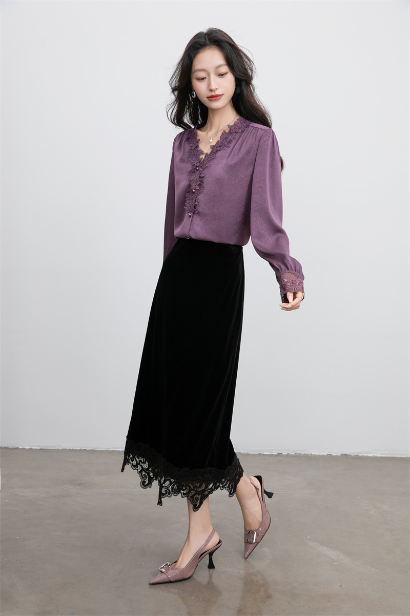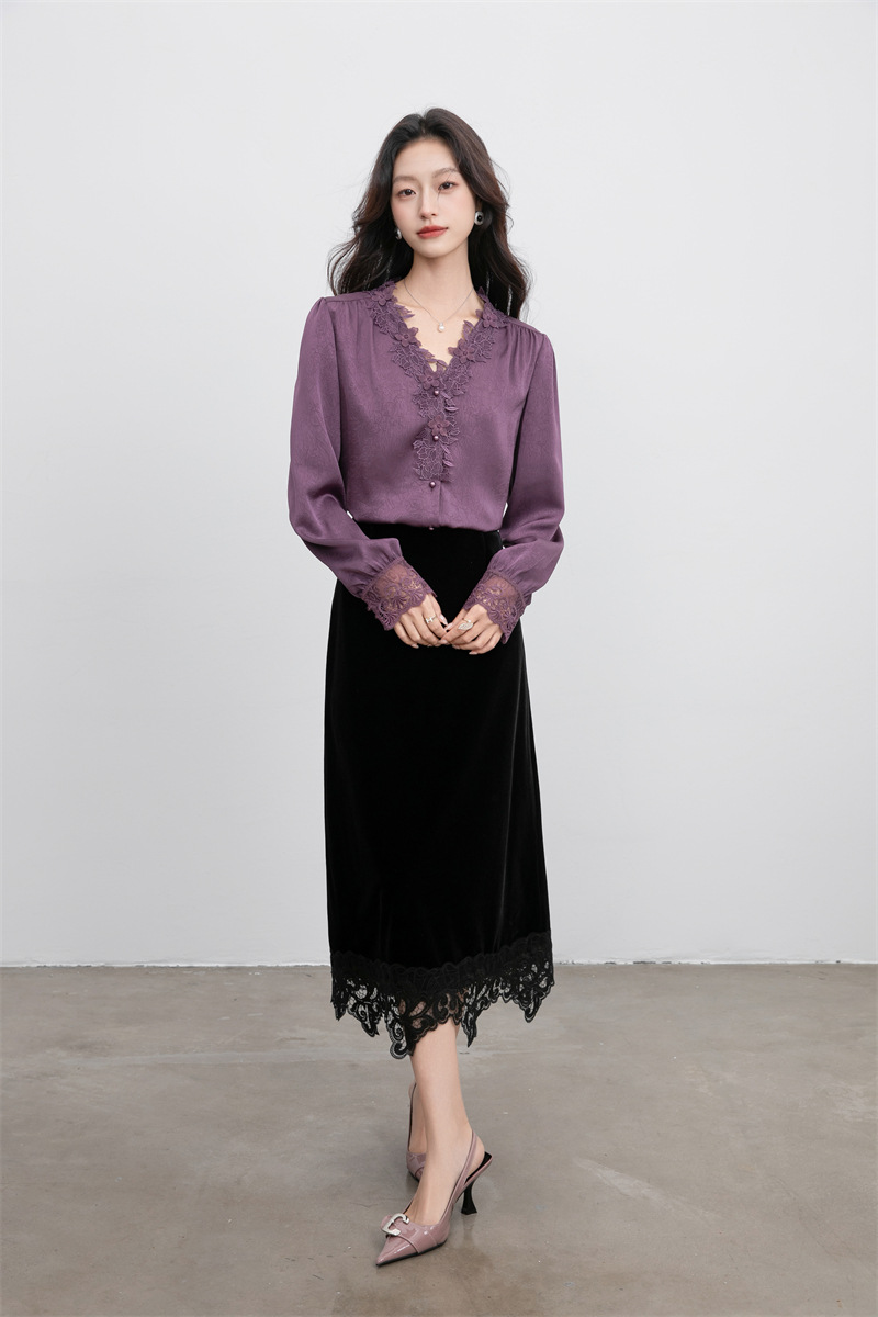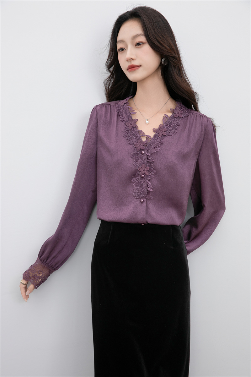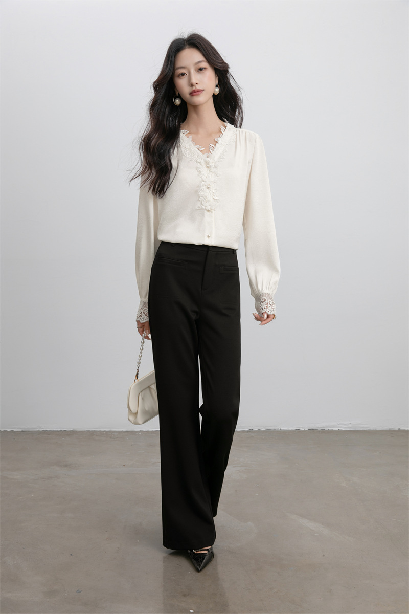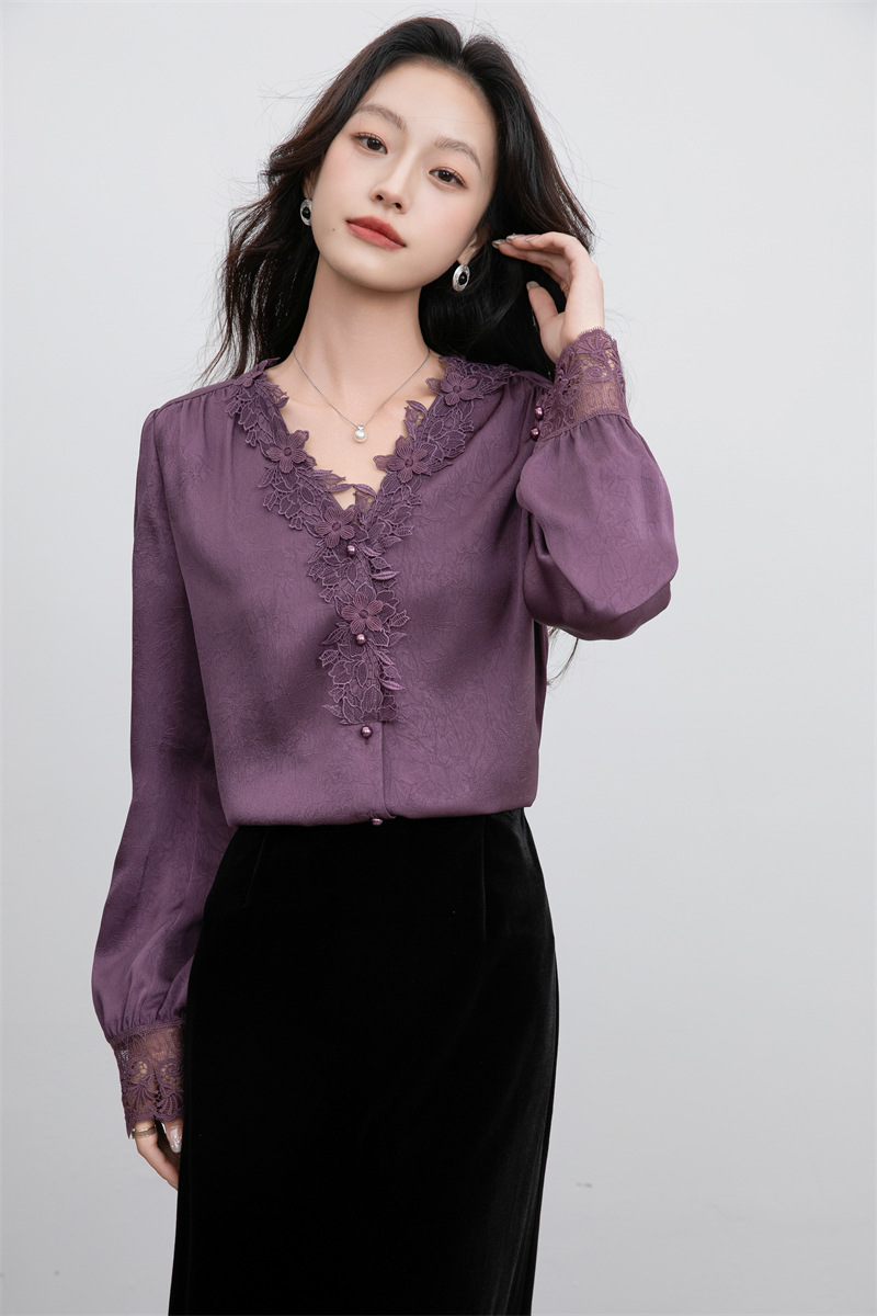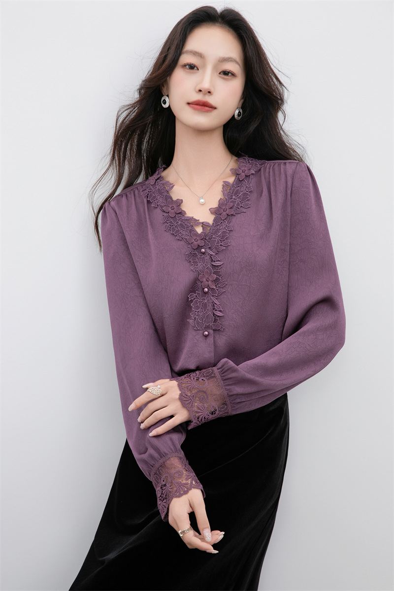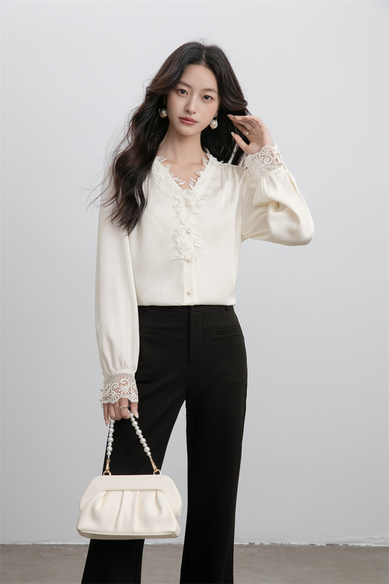 「自」全新升级【铂金会员174/天猫229/差价55】(75528)洛诗琳法式气质蕾丝领衬衫2025秋季新款设计感雪纺衫上衣女
