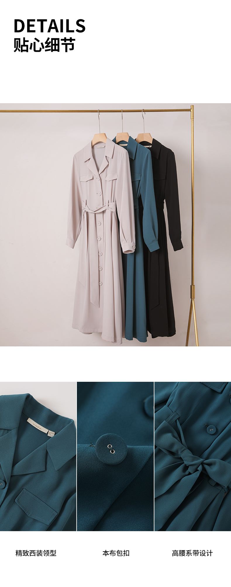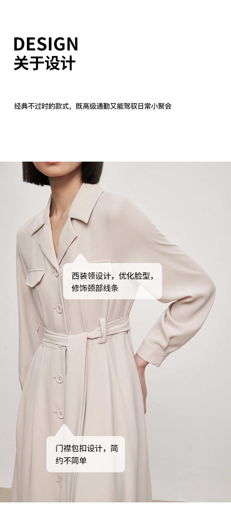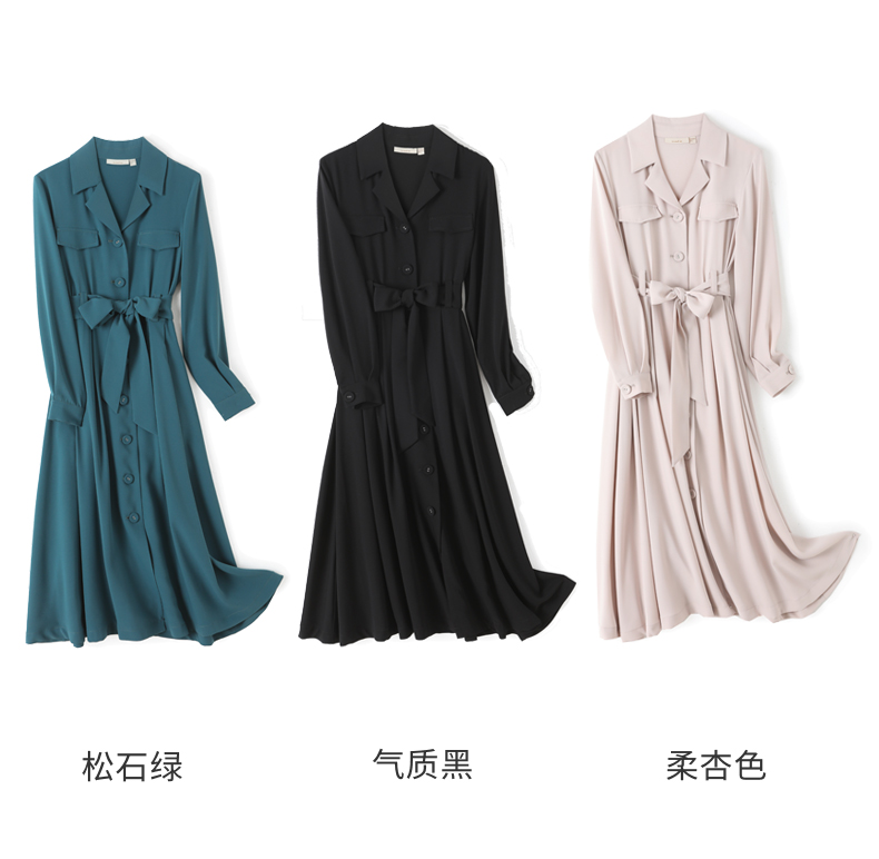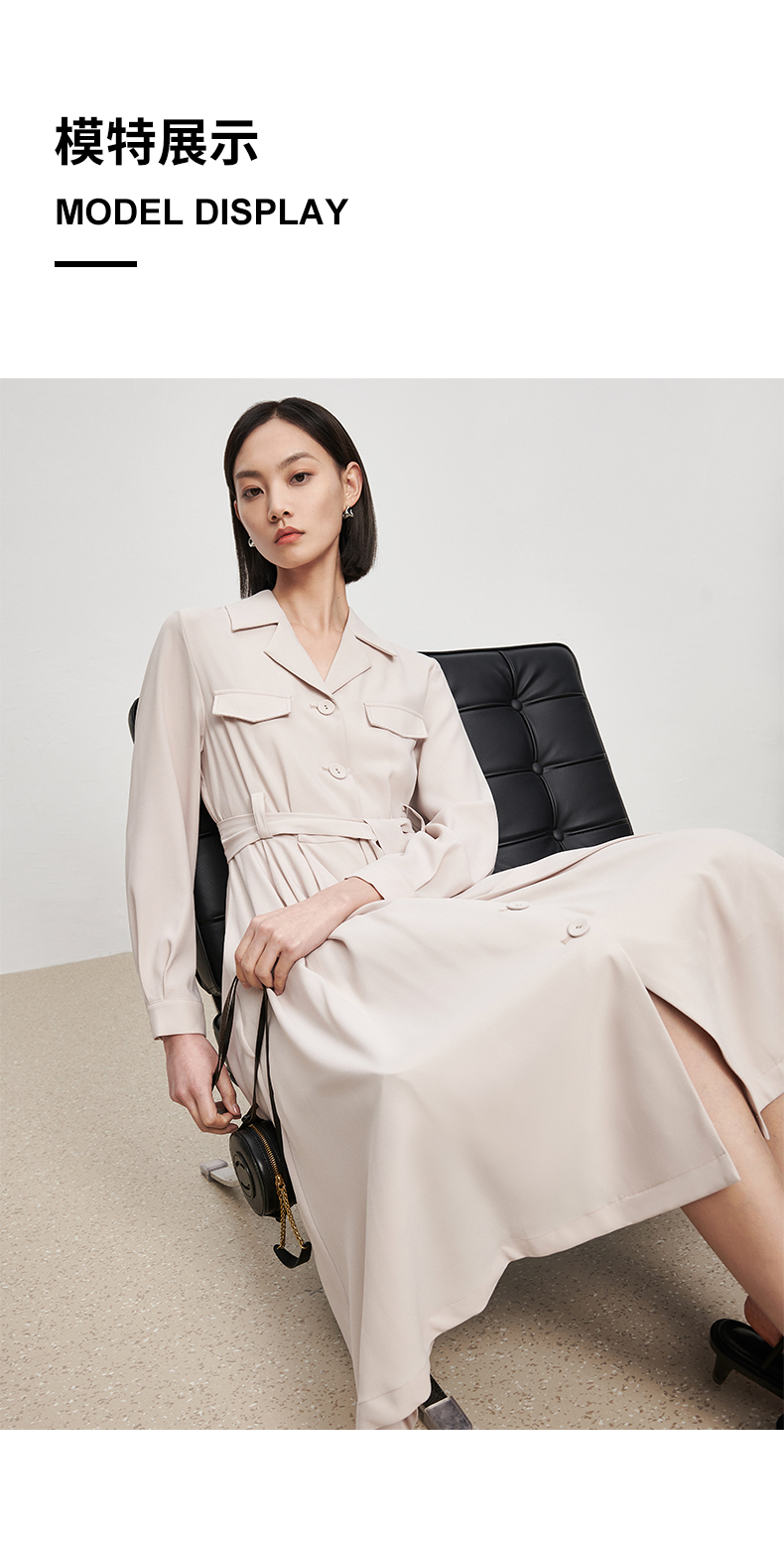 IN AND ON22406西装裙女收腰高级感气质高腰西装领长袖大摆中长款a字连衣裙