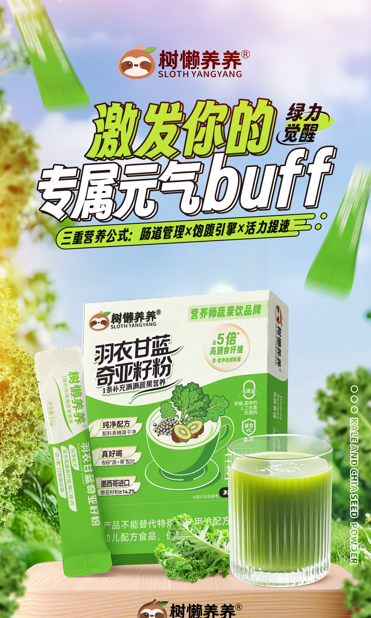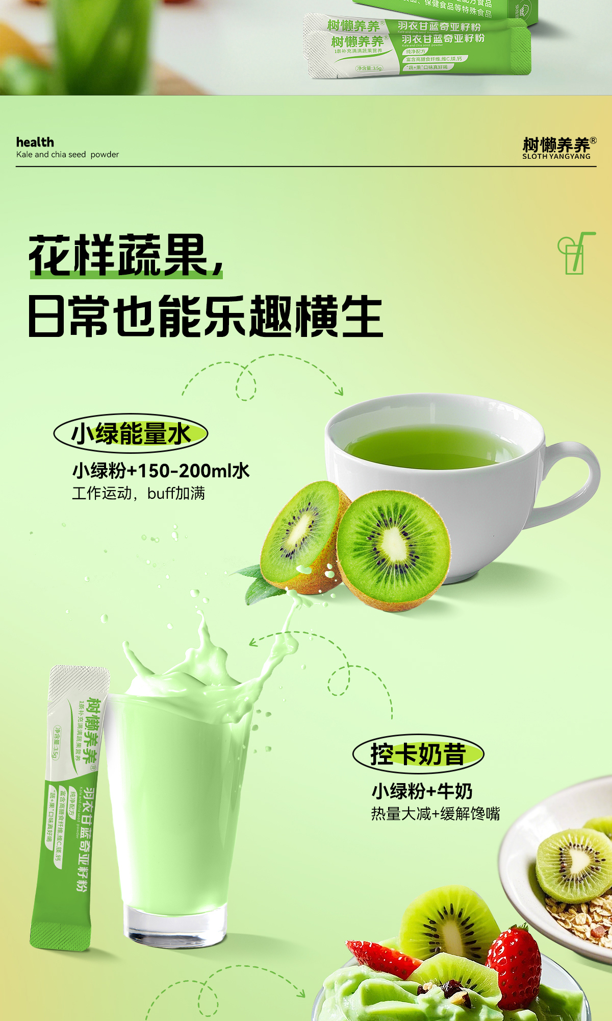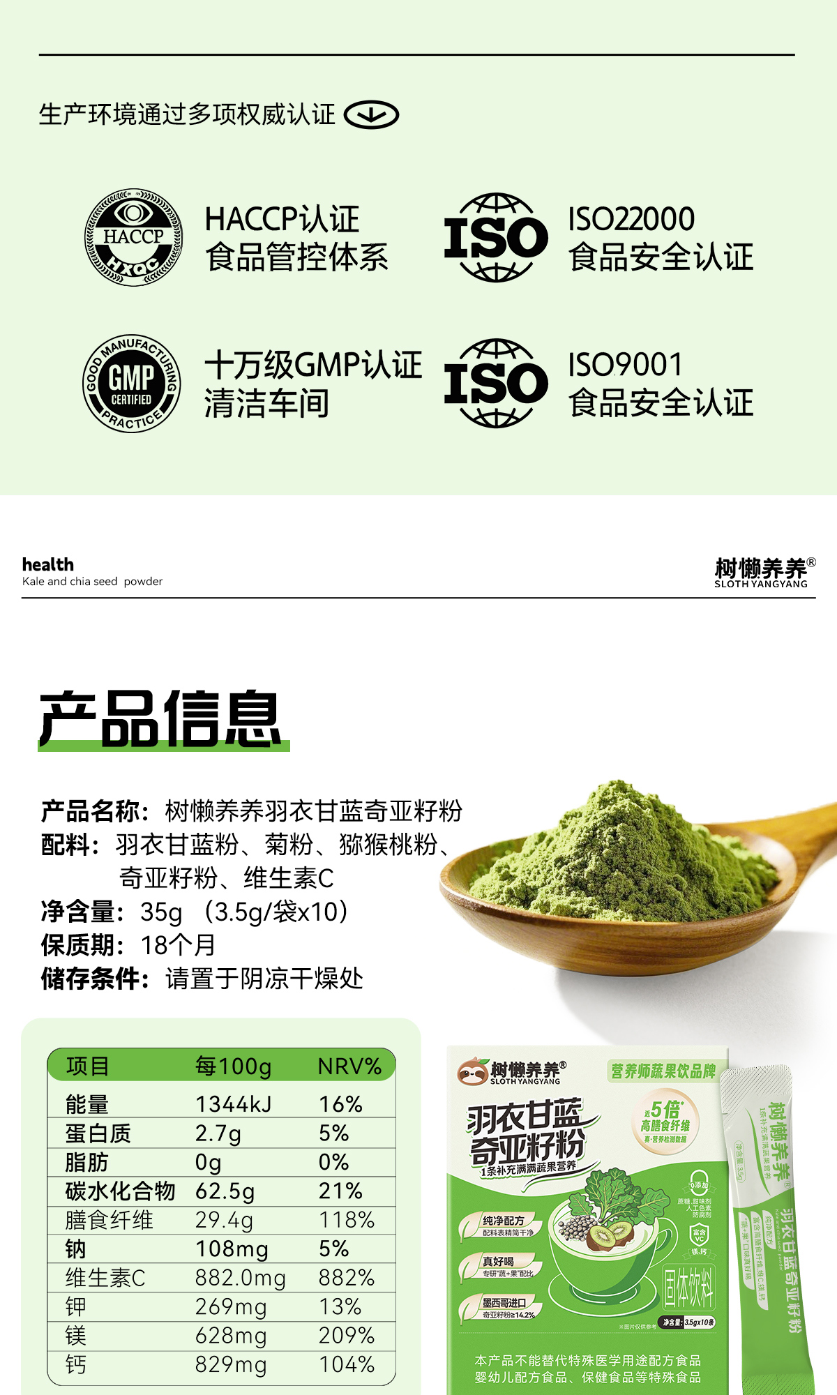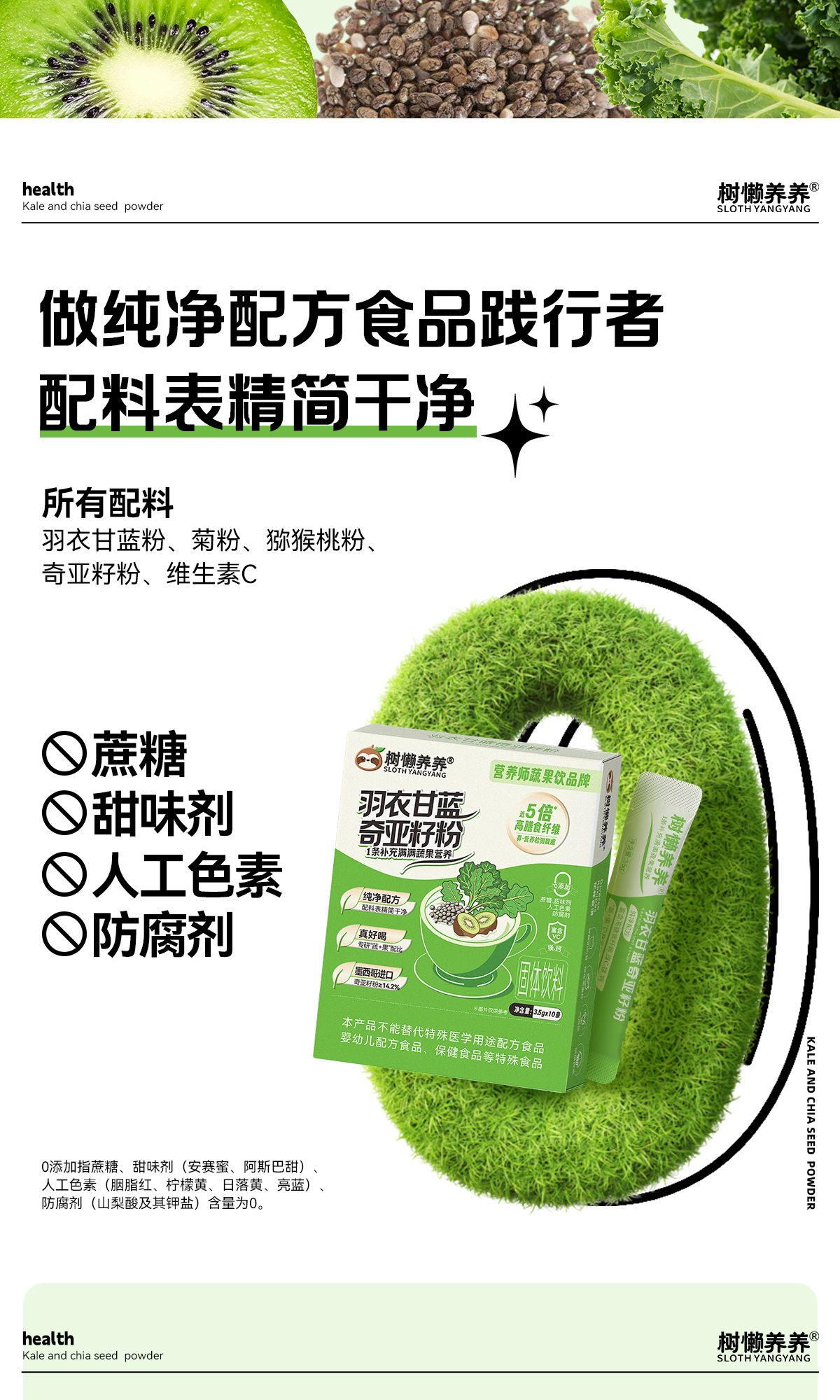 树懒养养 羽衣甘蓝奇亚籽粉三盒装 35g/盒(3.5g*10袋)🌱 纯果蔬,0添加更纯净