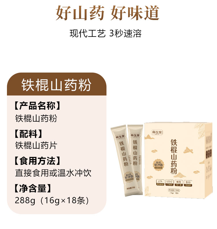怀生堂新一代好冲泡铁棍山药粉288g 2盒