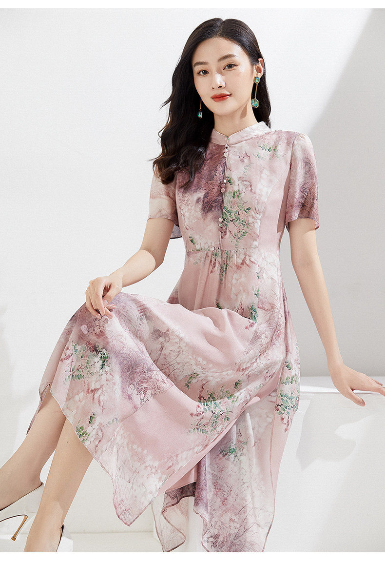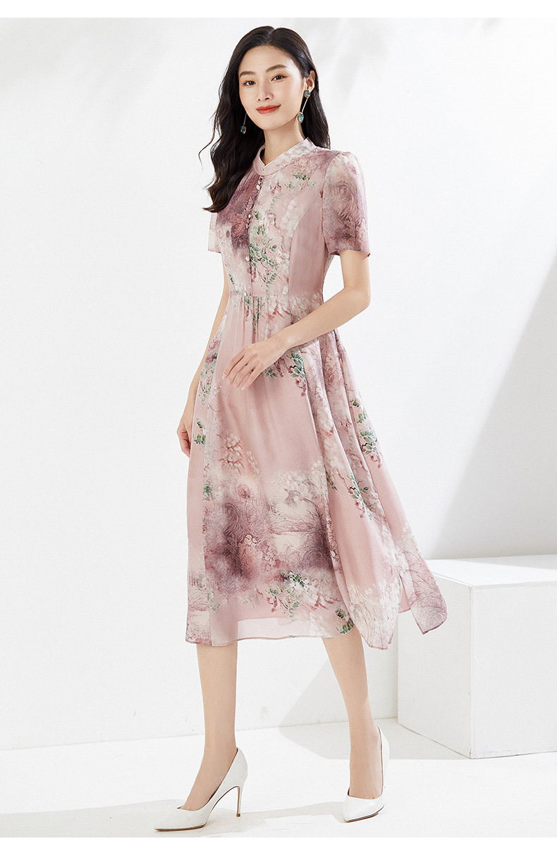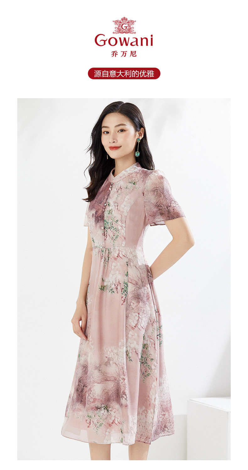 乔万尼真丝连衣裙夏季新重磅桑蚕丝粉色宽松EI2E869