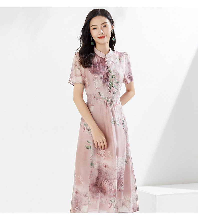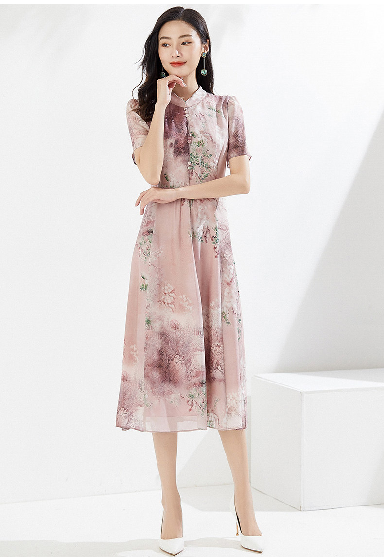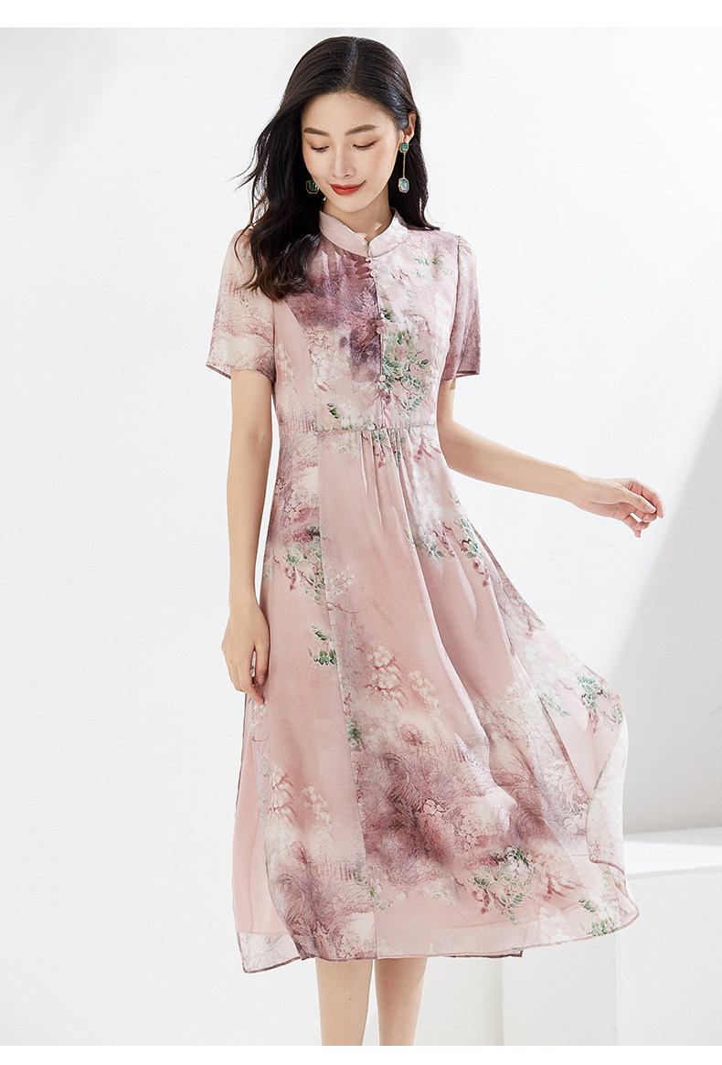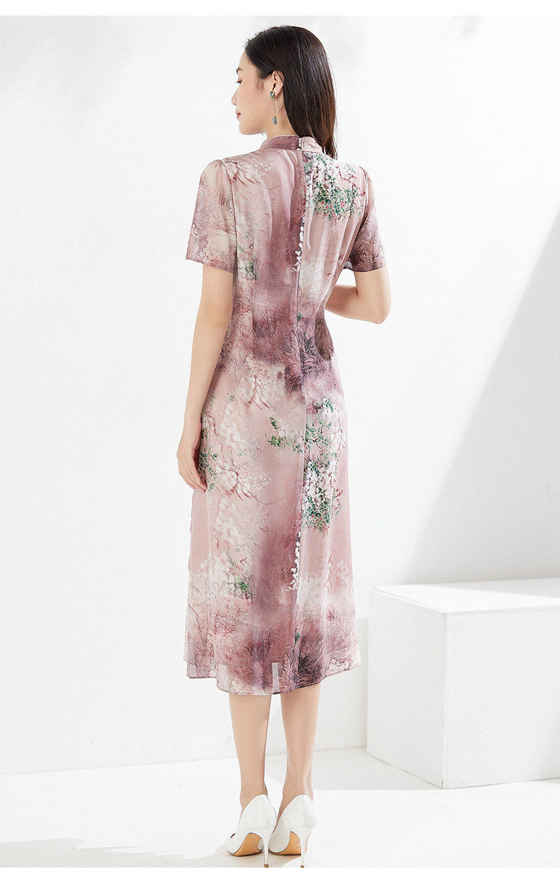 乔万尼真丝连衣裙夏季新重磅桑蚕丝粉色宽松EI2E869