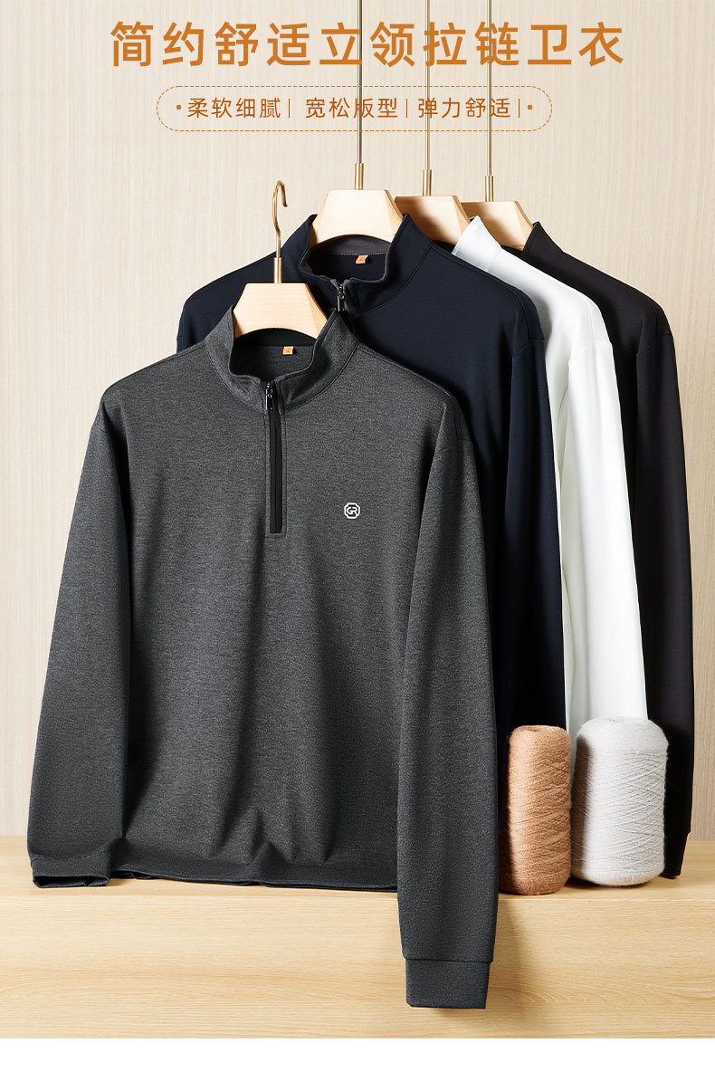 【棉质】【DWP】大依优型大码男装立领半拉链长袖卫衣秋季时尚休闲商务百搭含棉加肥加大