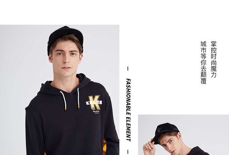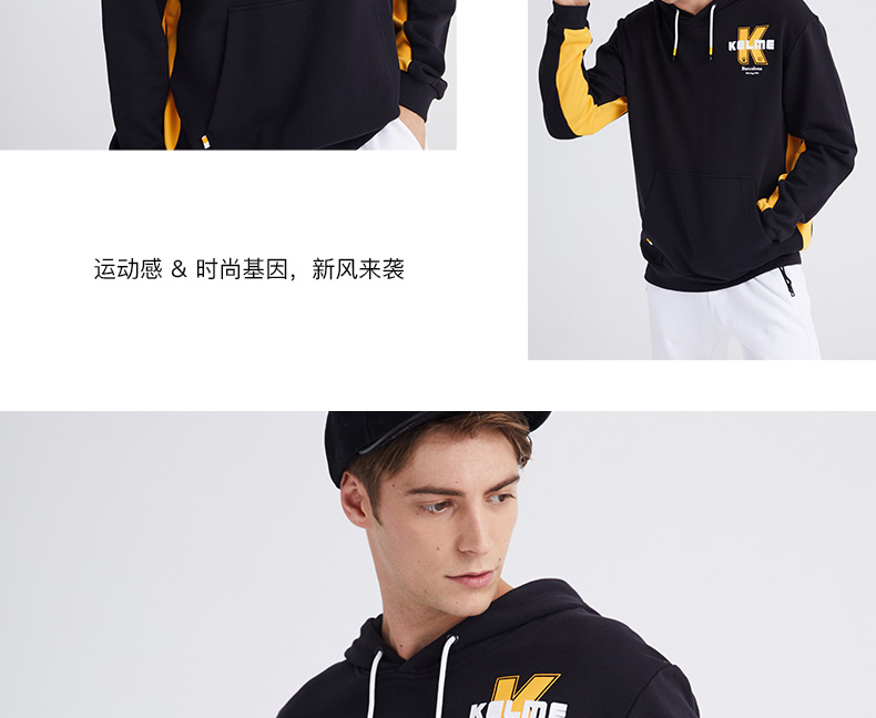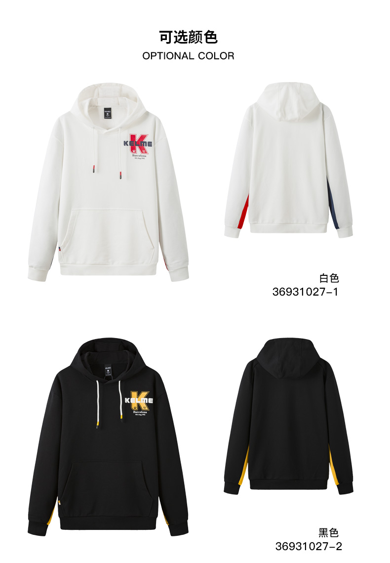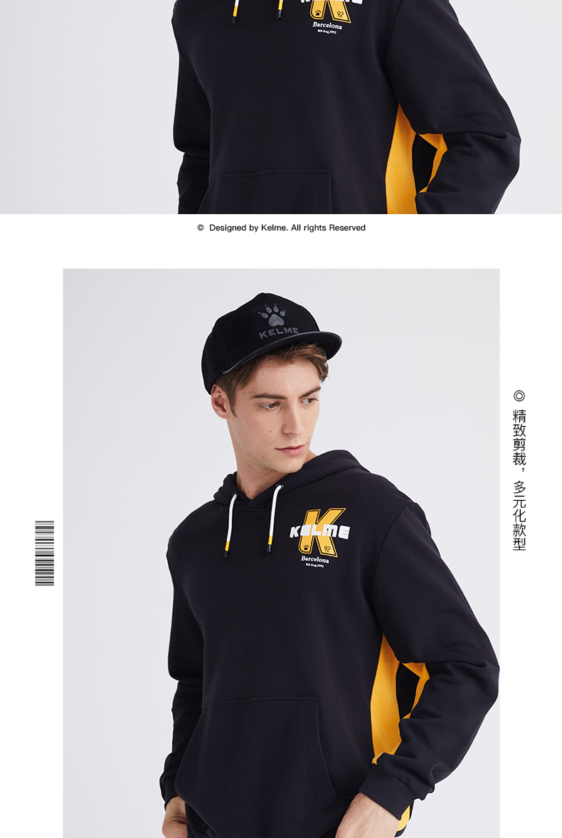 KELME卡尔美男士秋冬连帽卫衣外套时尚休闲学生上衣套头衫