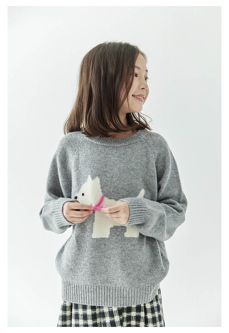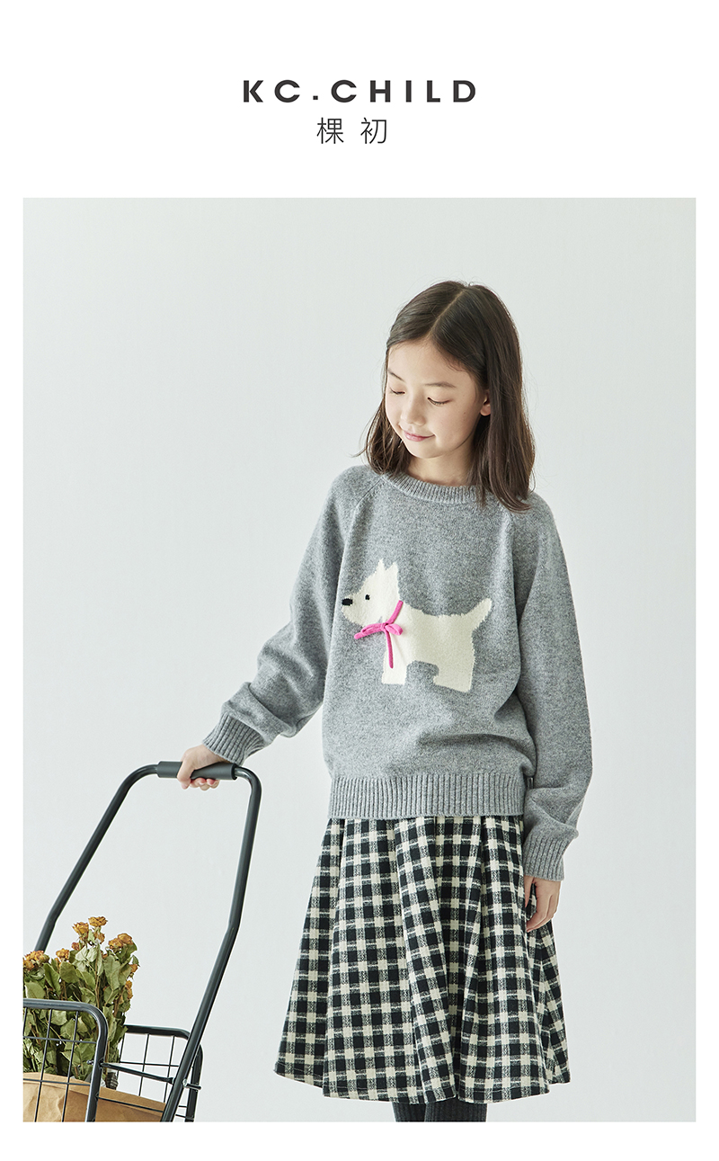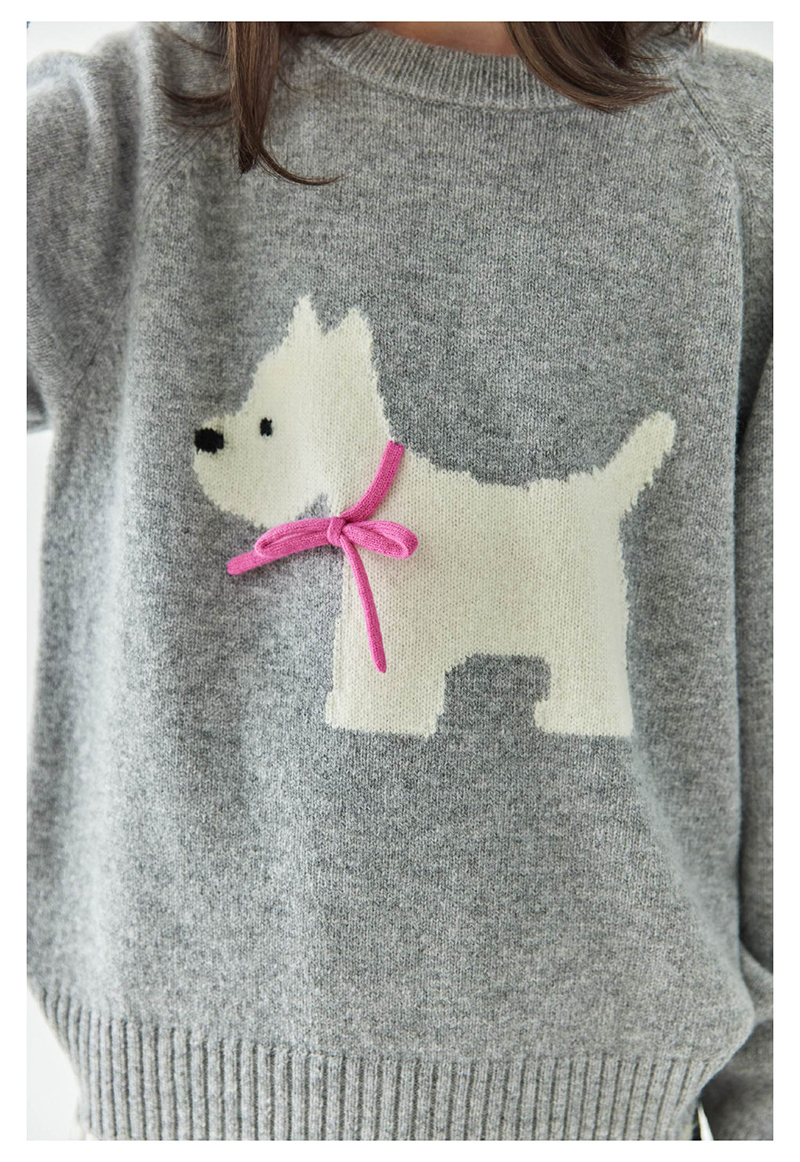 棵初24年冬季新款戴上蝴蝶结的可爱小狗毛衣女童柔软亲肤羊毛衫