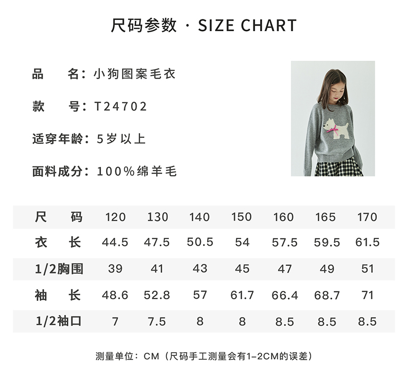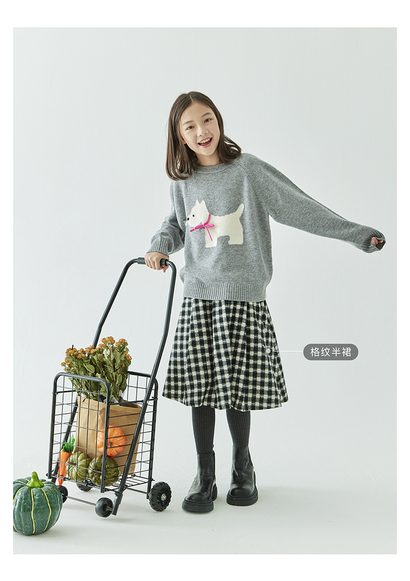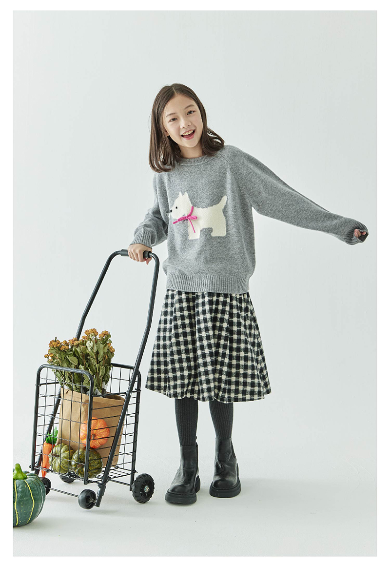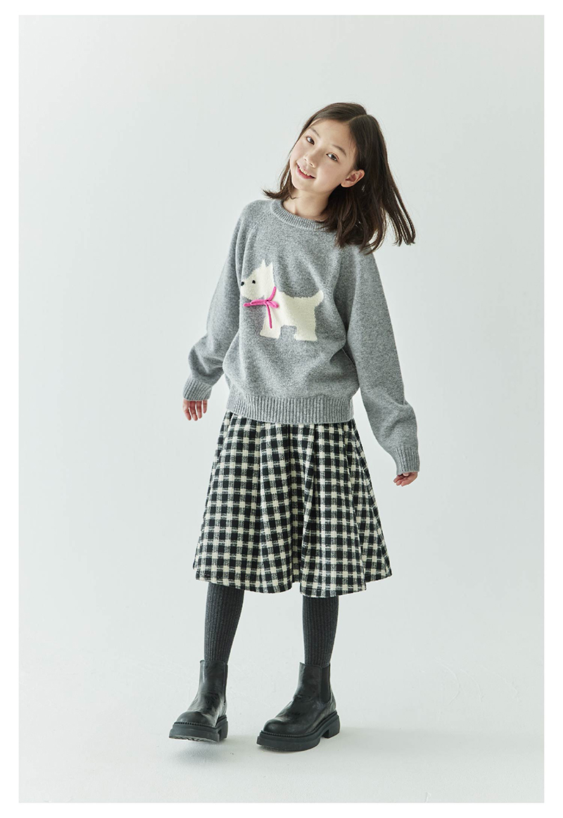 棵初24年冬季新款戴上蝴蝶结的可爱小狗毛衣女童柔软亲肤羊毛衫