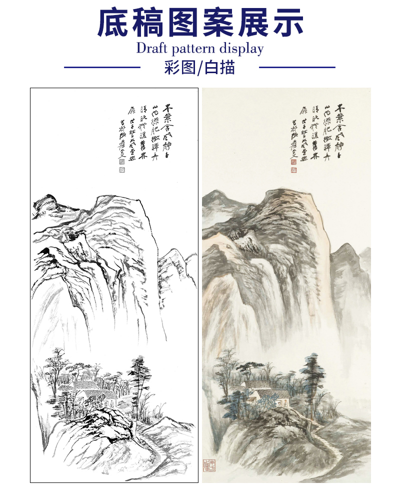 《千里江山图》局部-51*180厘米白描底稿多图案可选