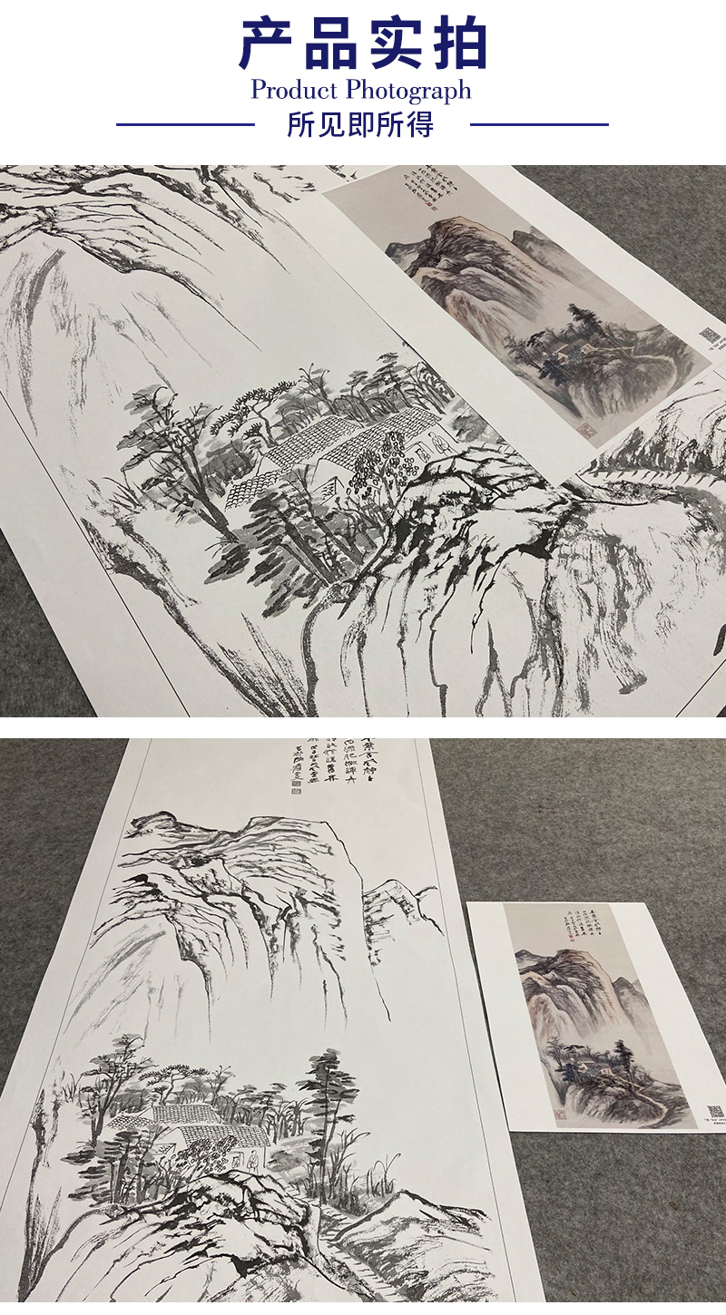 张大千竖幅工笔山水白描底稿-QD13